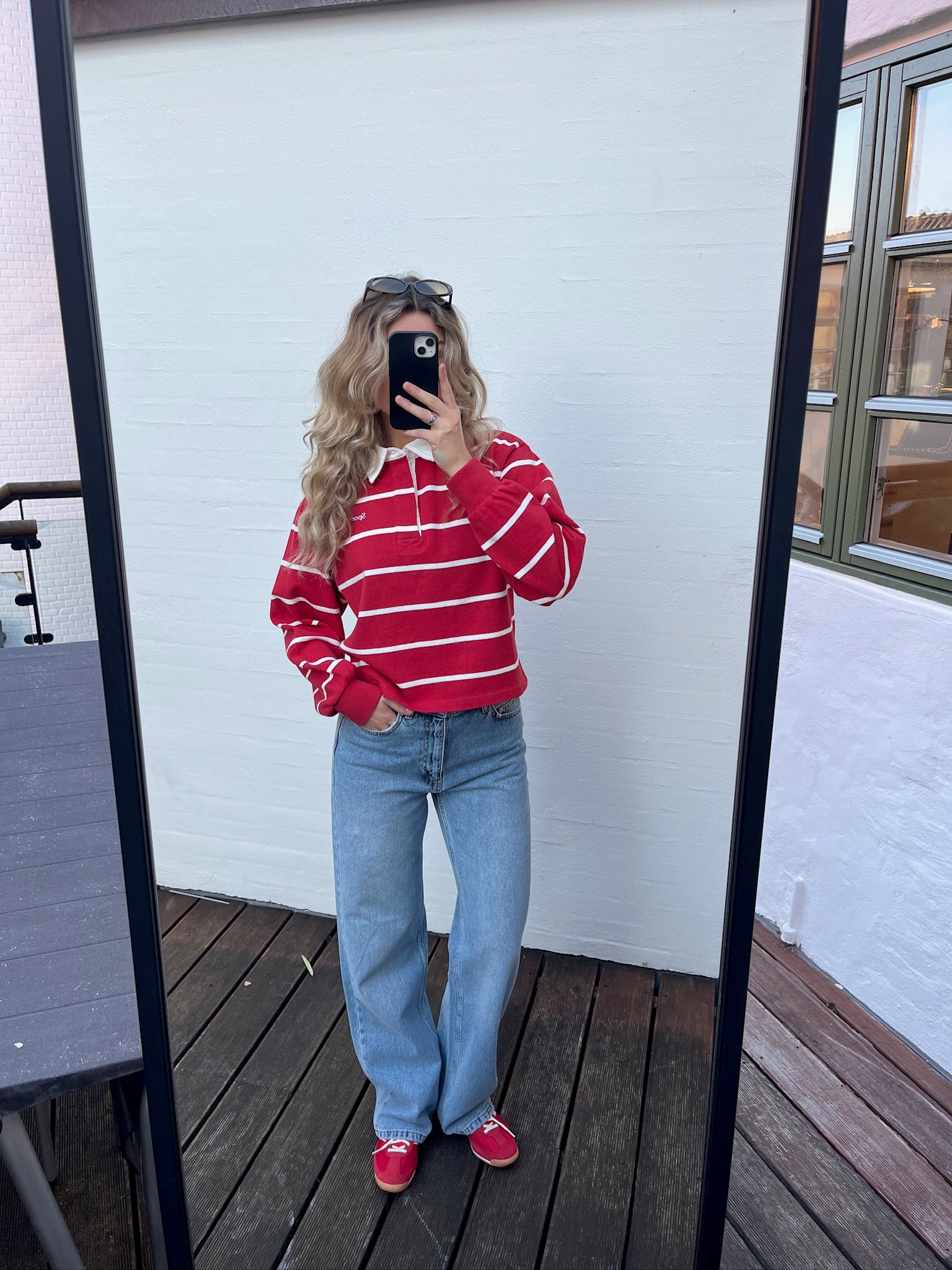 Serif Logo Cropped Rugby Polo - Ruby/White - Lagt i handlekurven