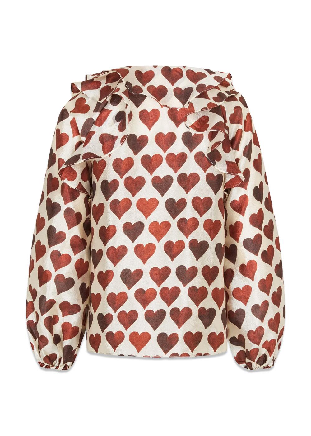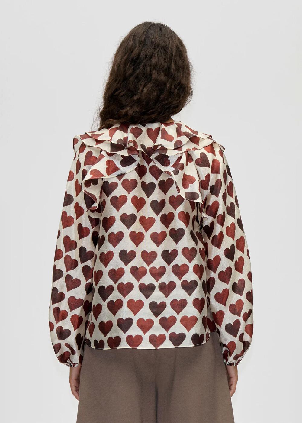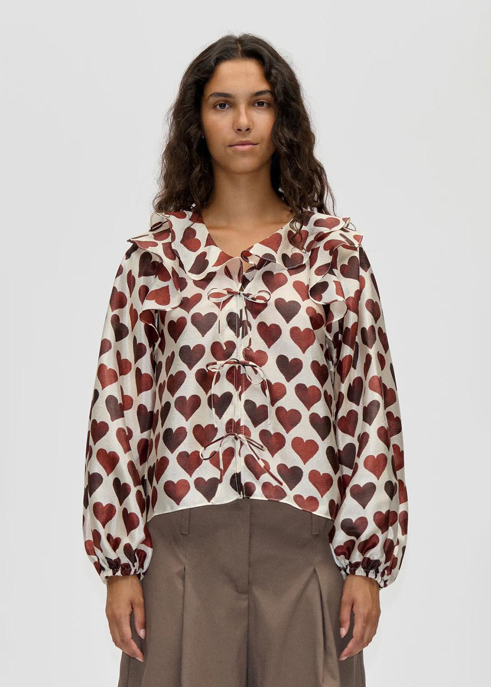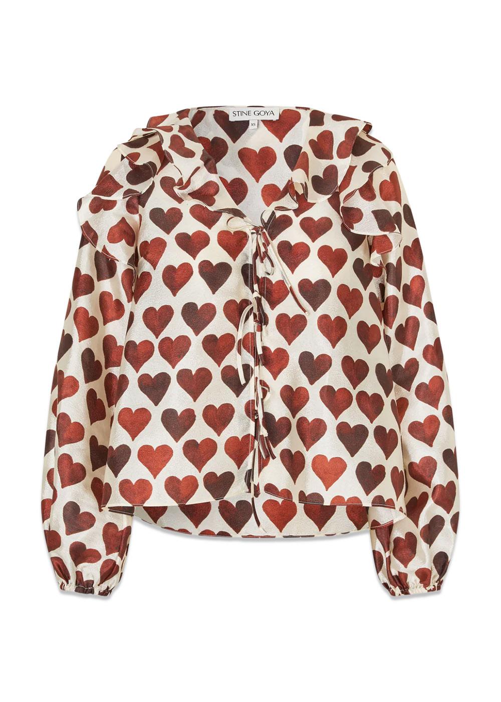 Denne blusen fra Stine Goya er laget av et flatt, teksturert polyestermateriale. Den har et unikt hjertetrykk i svarte og grå nyanser, som gir et stilig uttrykk til enhver anledning.