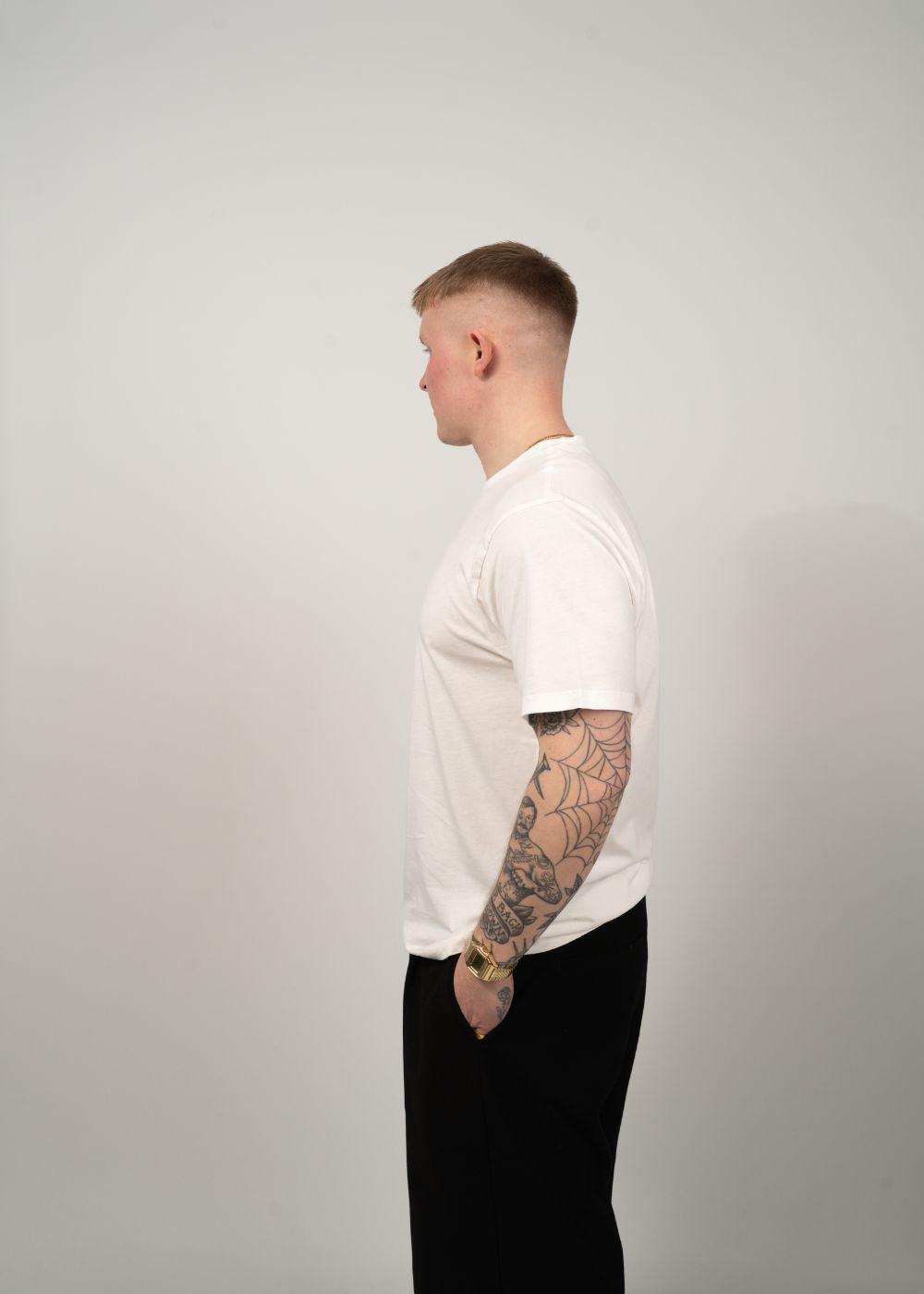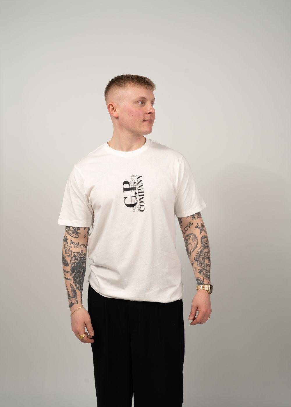 Denne kortermede T-skjorten fra C.P. Company er fremstilt i 30/1 bomullsjersey. Overdelen har en klassisk crew neck og er dekorert med et vertikalt grafisk logoprint på brystet.