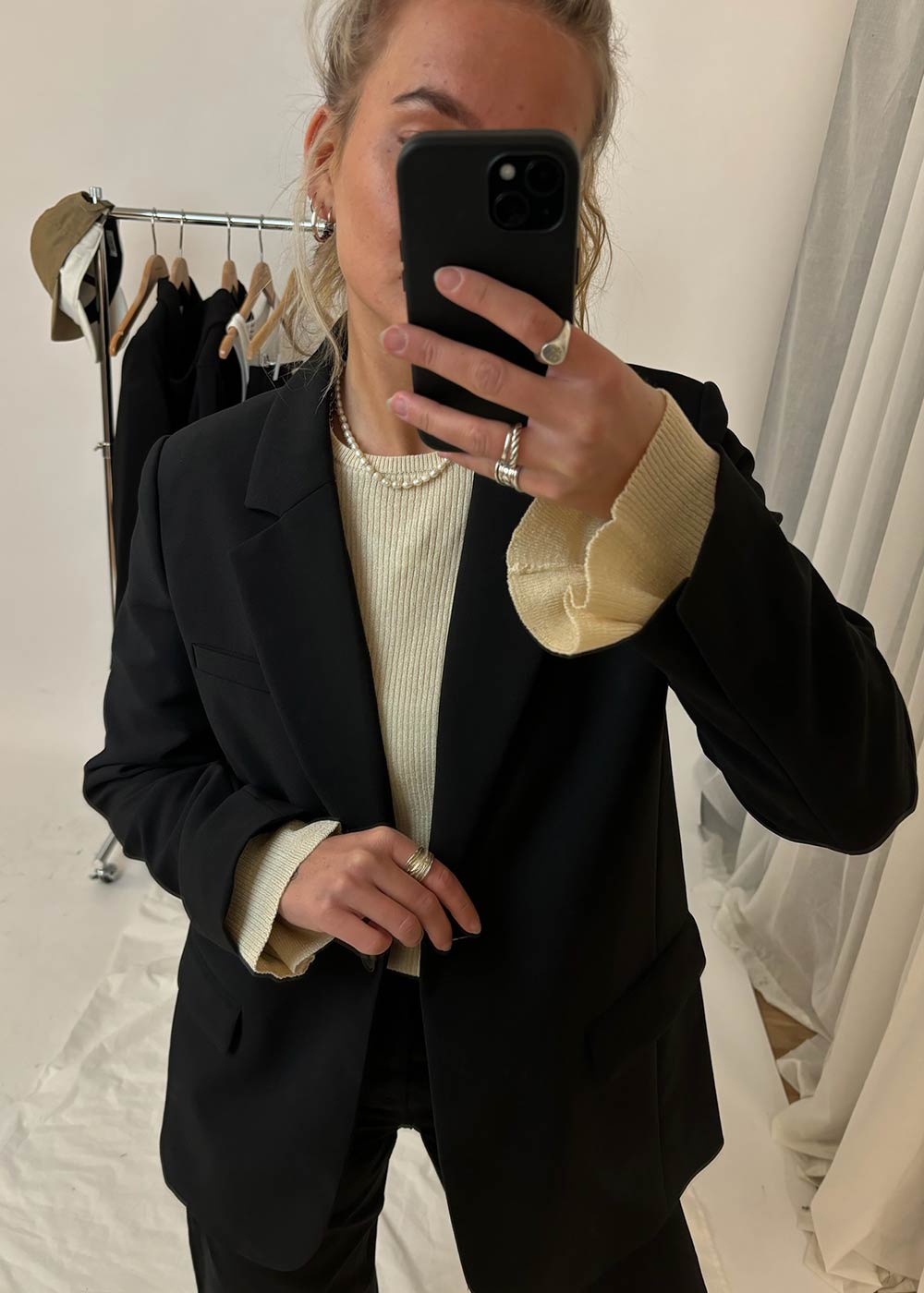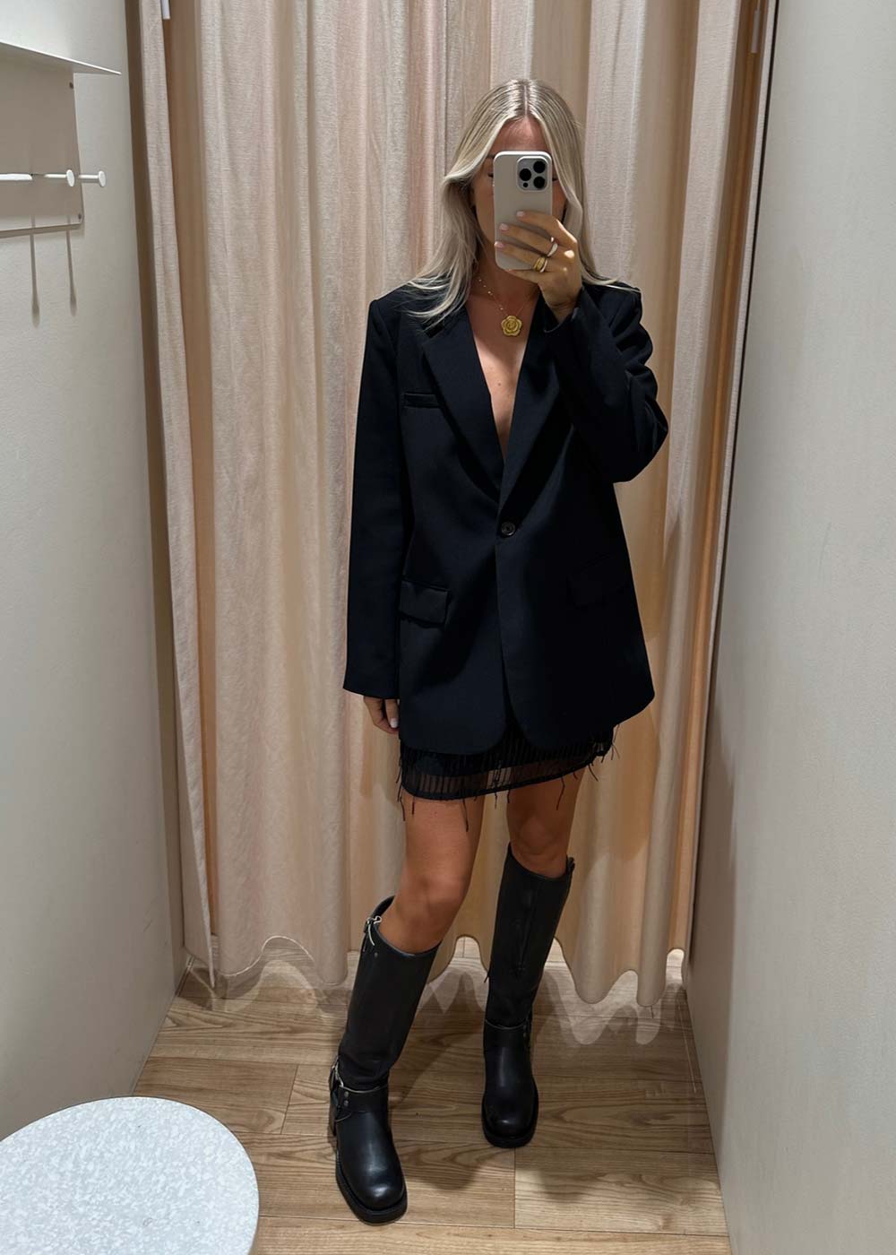 Størrelsesguide: Hvis du ikke liker det oversized uttrykket, anbefaler vi at du går ned en størrelse. Hvis du velger din normale størrelse, vil du få et litt oversized utseende på grunn av de brede skuldrene og den vide passformen. Hvis du vil ha en mer oversized look, anbefaler vi at du velger den største størrelsen hvis du er midt imellom, eller går opp en størrelse.
