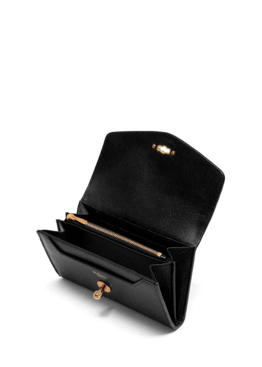 Mulberrys Medium Darley Wallet i svart lær er et stilig og praktisk tillegg til garderoben din. Den er ideell for å holde de viktigste kortene og kontantene dine organisert med stil.