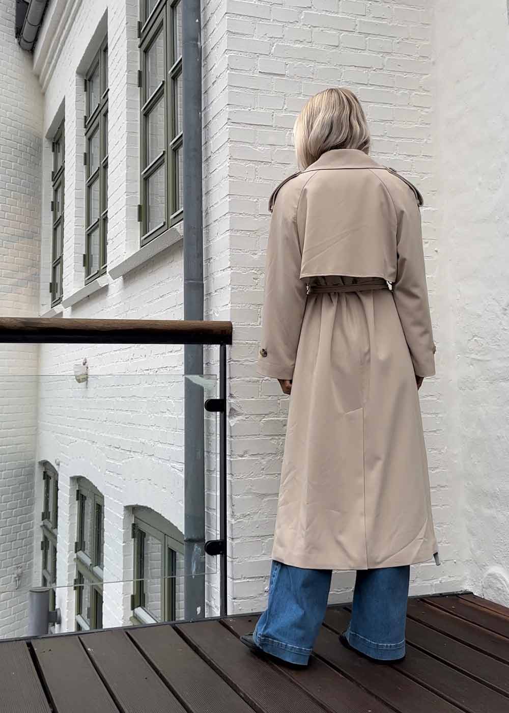 Denne kåpen kombinerer et tidløst design med moderne detaljer. Den myke blandingen av rayon og polyester sikrer en flott passform og gjør den ideell for både hverdag og formelle anledninger.