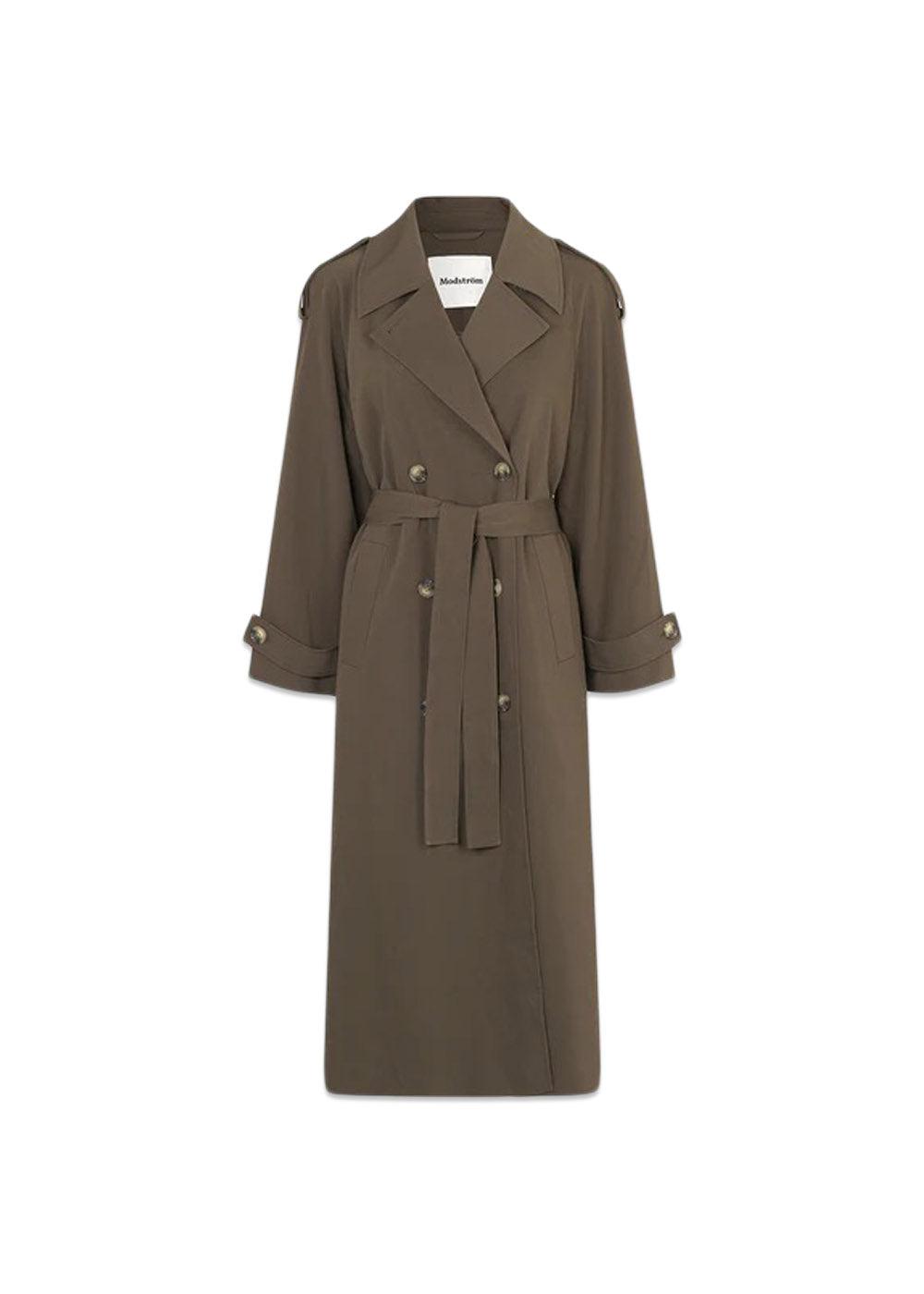- Klassisk knappelukking og belte i midjen