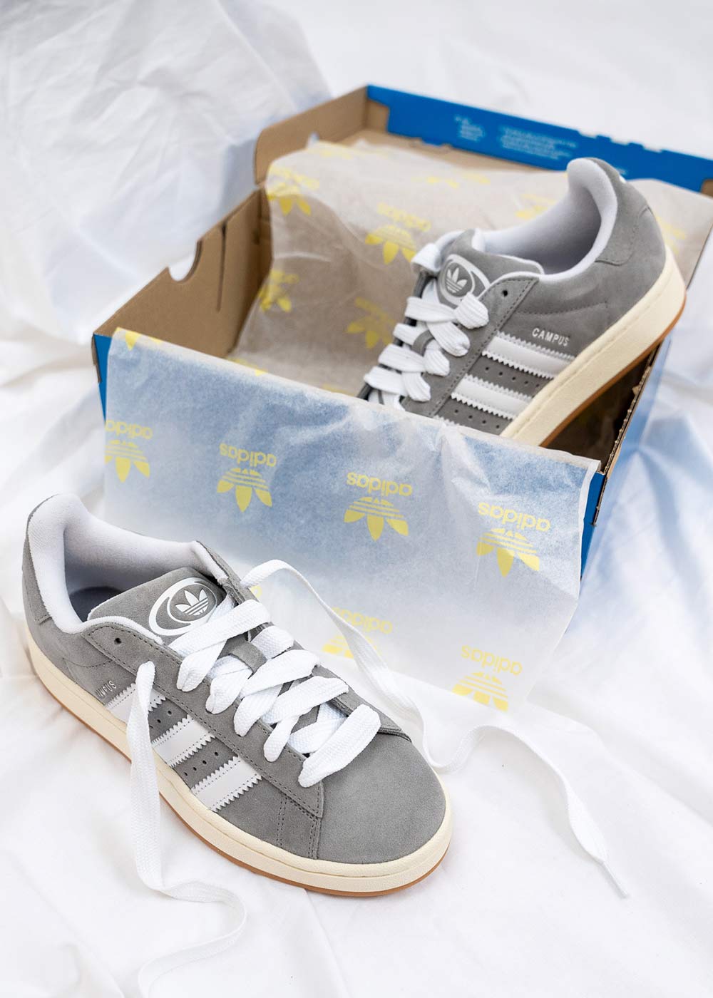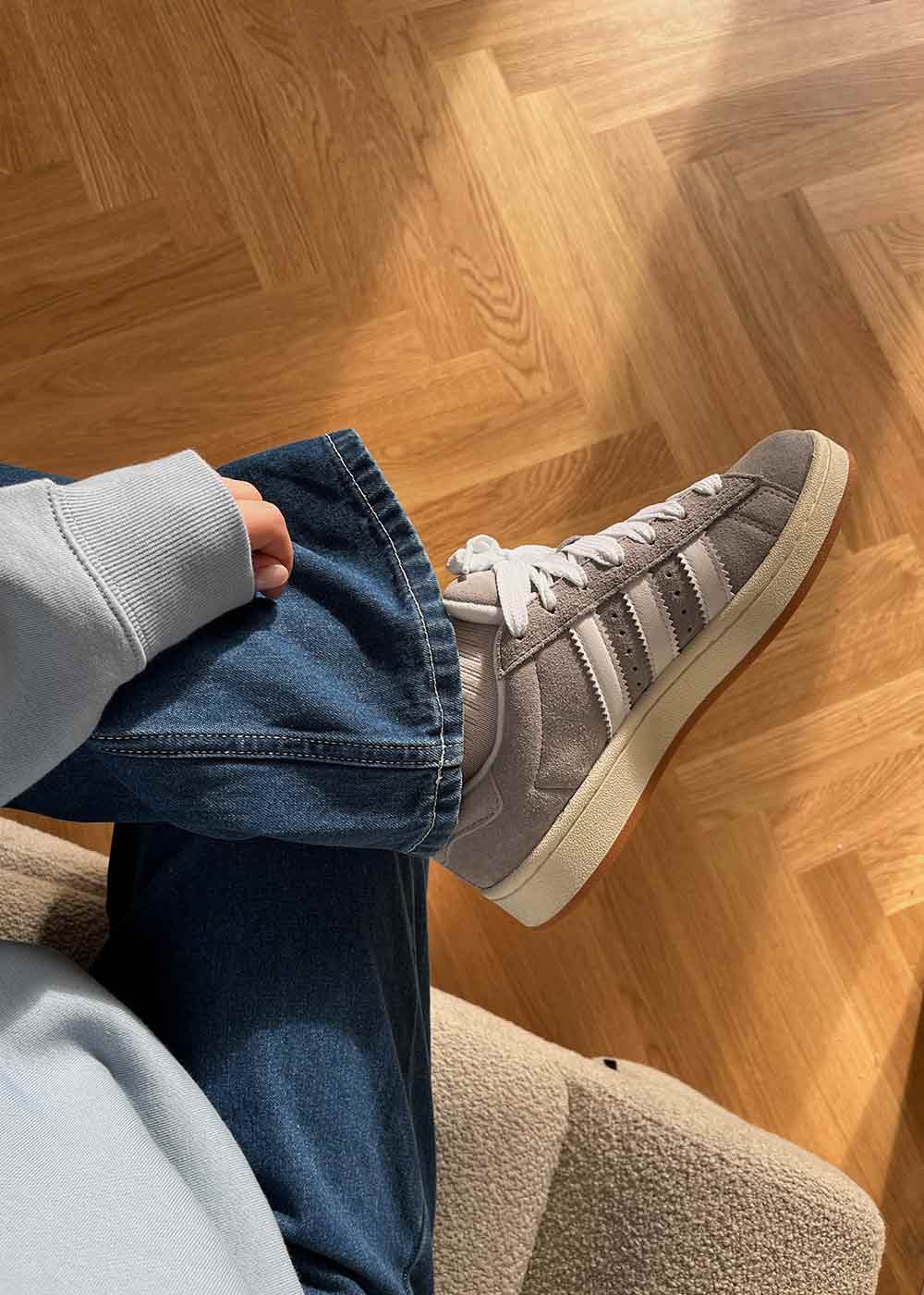 Disse Campus 00S-sneakersene kombinerer en overdel i semsket skinn med ikoniske detaljer. Den allsidige gråfargen og det tidløse designet gjør dem til et opplagt valg for enhver garderobe.