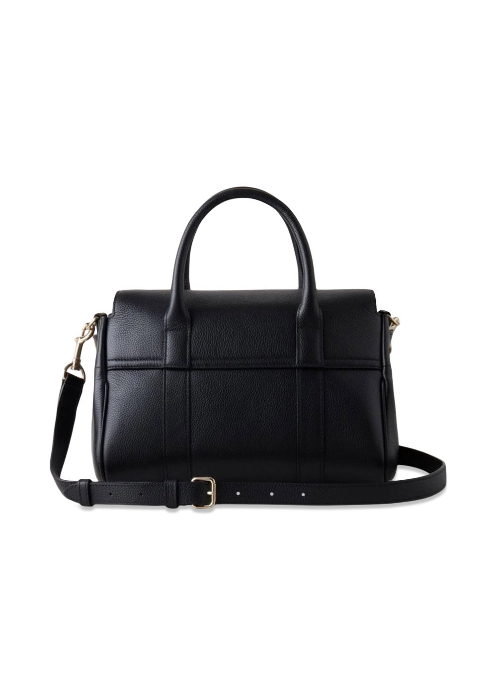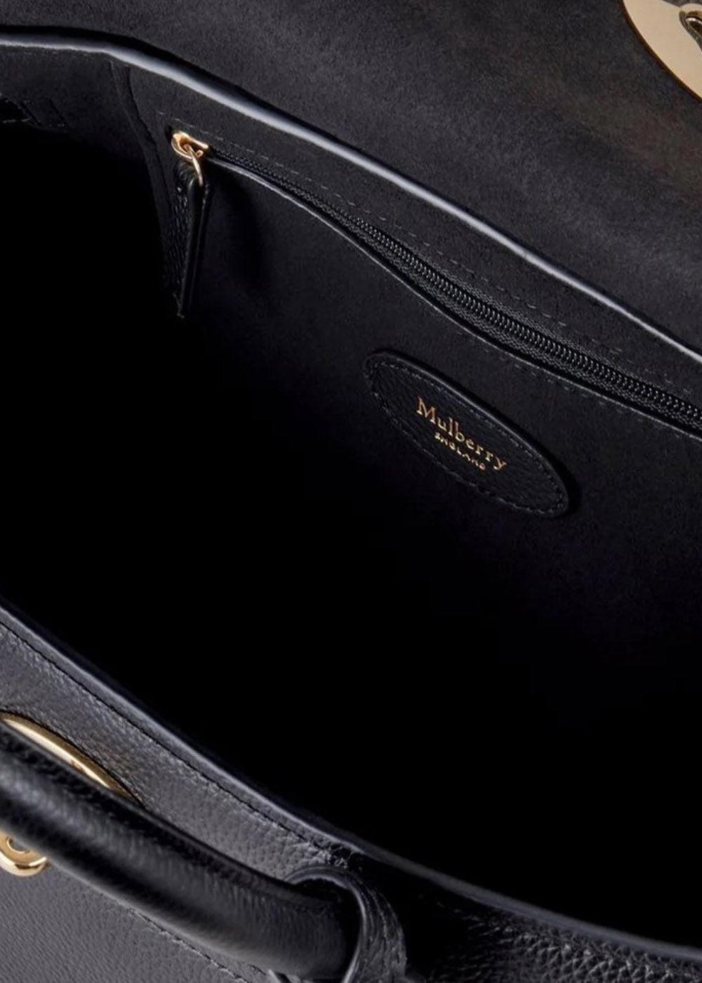 Small Bayswater satchel er en veske i fargen svart fra Mulberry. Vesken har den ikoniske Postman's Lock, to topphåndtak i lær, en avtakbar skulderrem, et stort rom samt en innvendig glidelåslomme.