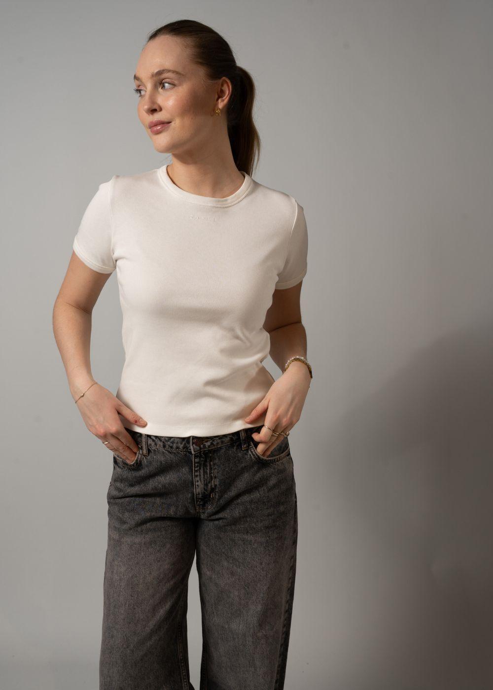 Klassisk T-skjorte fra Soeur i en ren hvit/krem nyanse. Designet er enkelt og stilfullt med en diskret, brodert logo på brystet, som tilfører et raffinert preg til din hverdagslook.