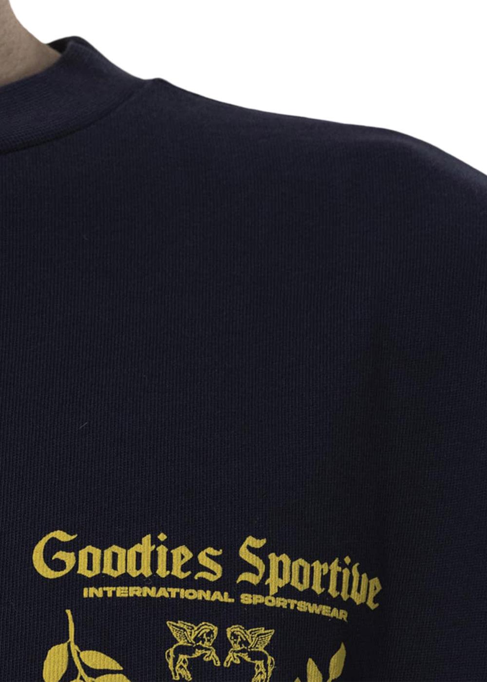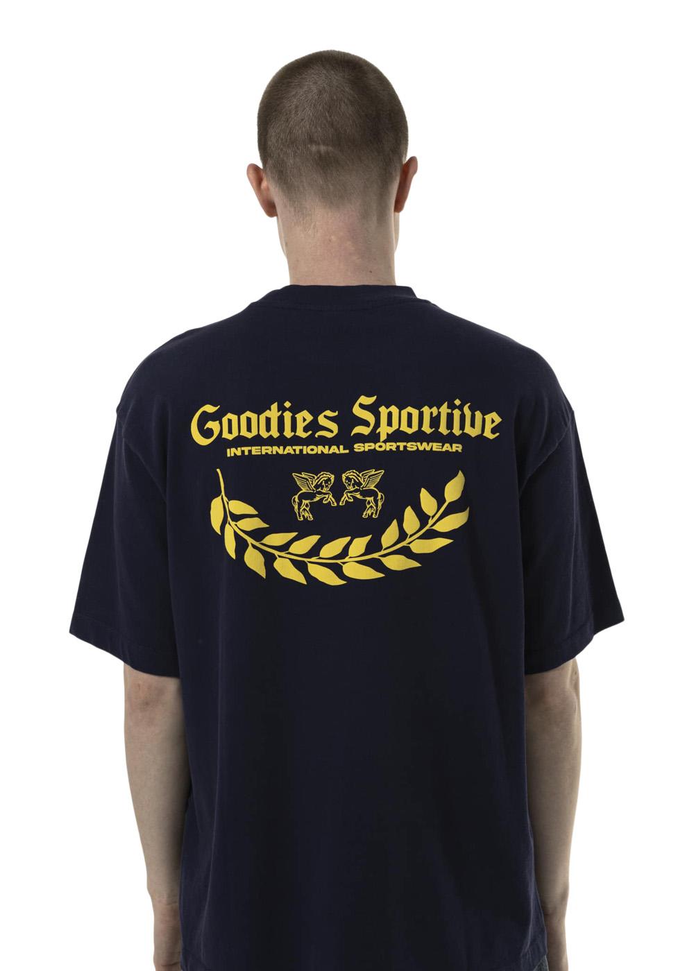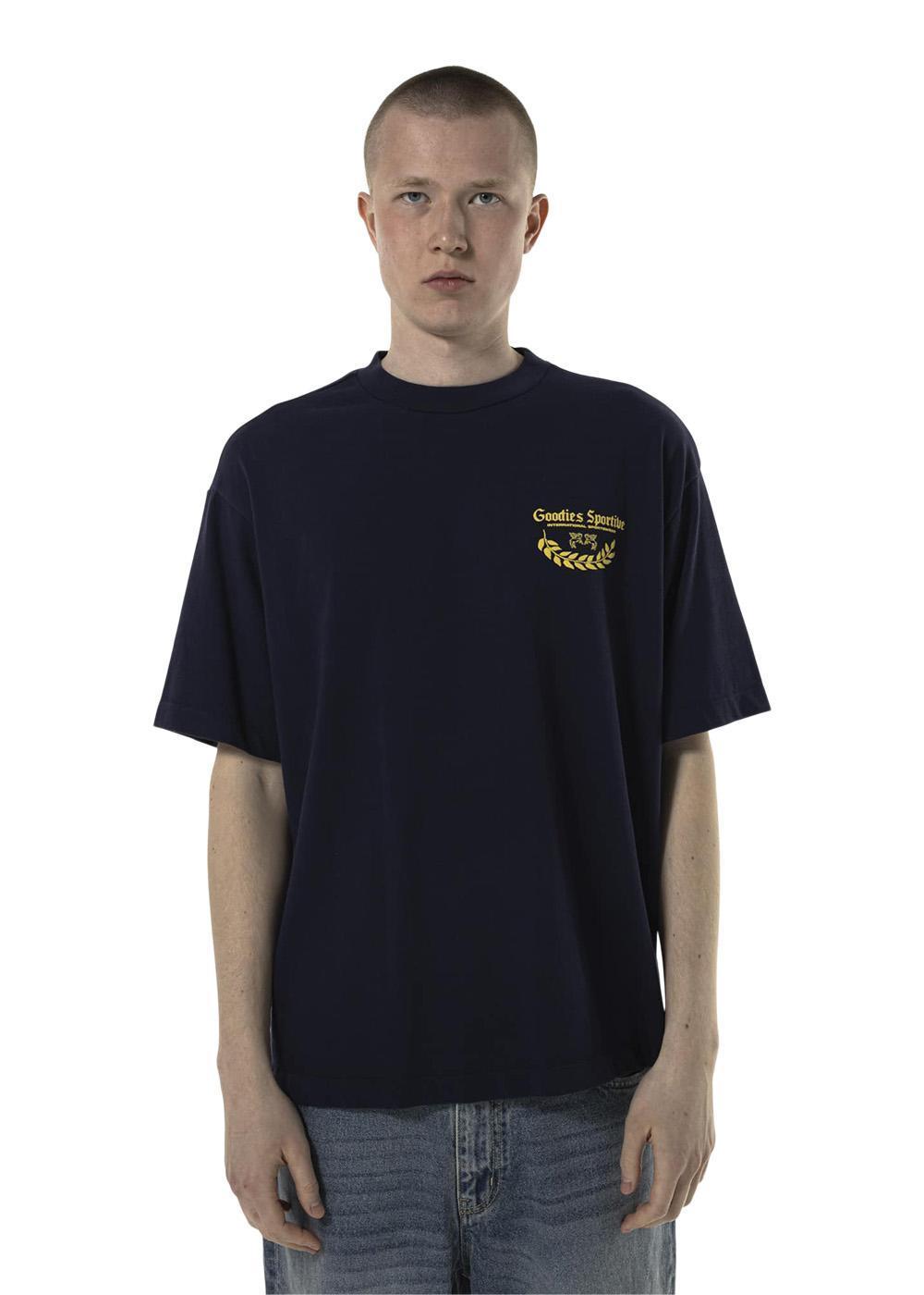 Denne T-skjorten kombinerer en avslappet passform med et sporty trykk, ideell for hverdagsbruk. Den dype marineblå fargen og det enkle designet gjør den til et allsidig og komfortabelt tilskudd til enhver garderobe.