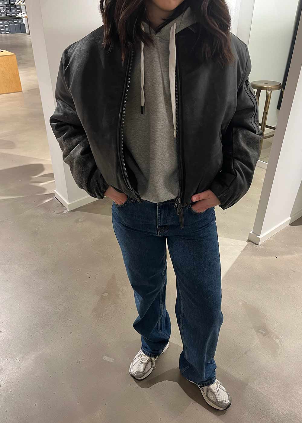 - Løs passform med vide ben