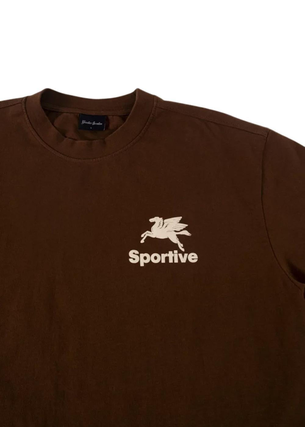 Denne T-skjorten fra Goodies Sportive kombinerer komfort med et moderne uttrykk. Den dype brune fargen og det markerte logotrykket skaper en allsidig stil som passer perfekt til en avslappet garderobe.