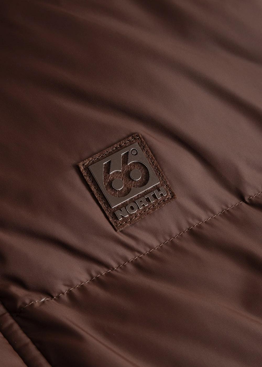 Hold varmen med stil i Dyngja dunjakken fra 66 North. Denne jakken i en dyp brun farge har en moderne, boxy passform og er isolert med dun, noe som sikrer optimal komfort og varme.
