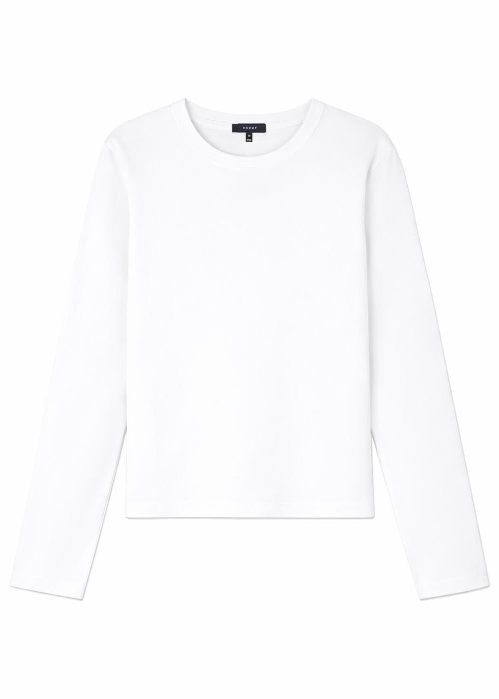 Flavie fra Soeur er en klassisk langermet T-skjorte i en ren hvit farge. Med sitt enkle design og rene linjer er den et allsidig og tidløst tillegg til enhver garderobe.