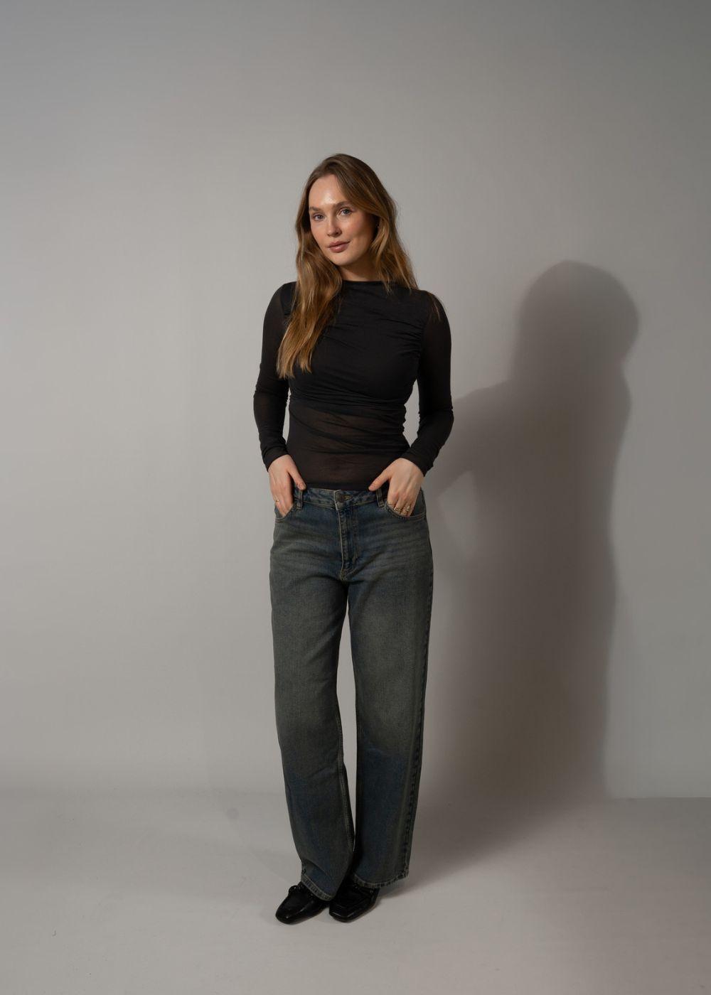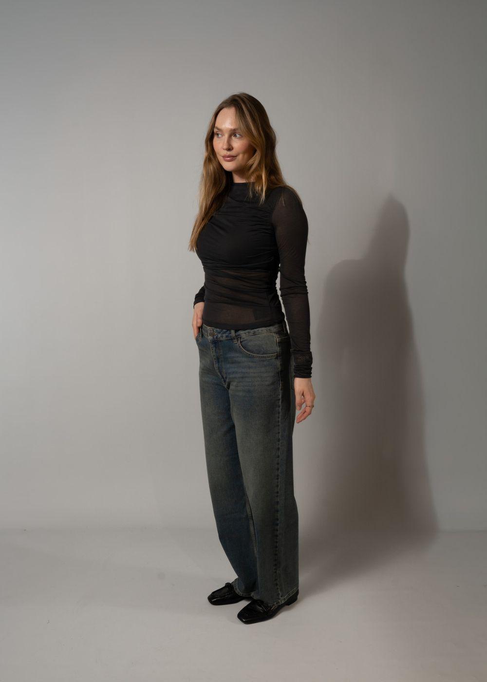 Gaia-blusen fra Soeur er en elegant, langermet topp i en vakker blågrå nyanse. Den er designet med fine rynker på tvers av kroppen og ermene, som skaper en flatterende og feminin silhuett.
