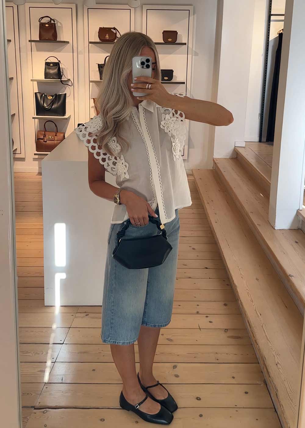 - Ikonisk design med flettet håndtak.