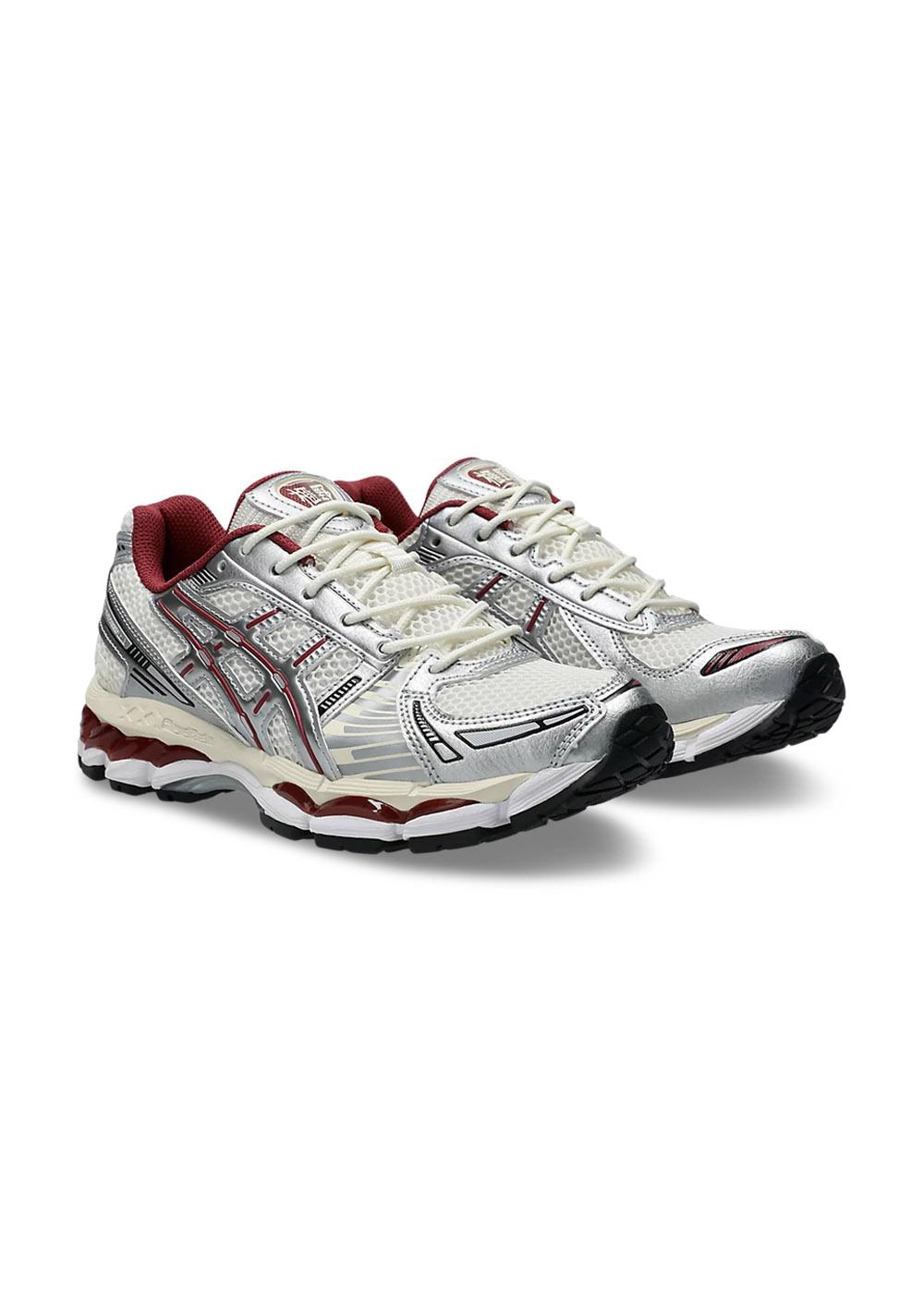 Disse GEL-KAYANO 12.1 sneakers kombinerer et retroinspirert design med moderne komfort. Fargekombinasjonen av krem, sølv og rødt gir et dynamisk utseende som passer til enhver stil og sikrer en behagelig passform.