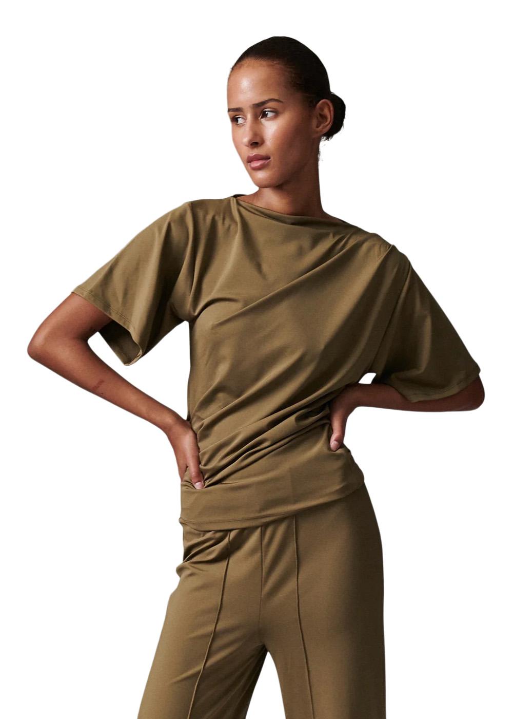 Opplev en elegant kombinasjon av stil og komfort med denne ensfargede T-skjorten. Perfekt for både hverdags- og festlige anledninger, med en lukket rygg og pullover-design.