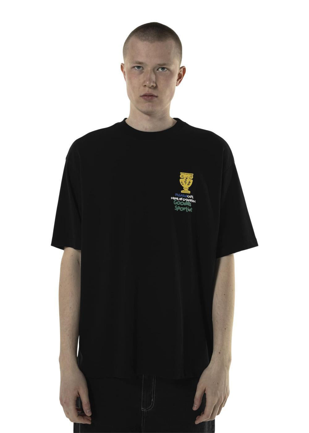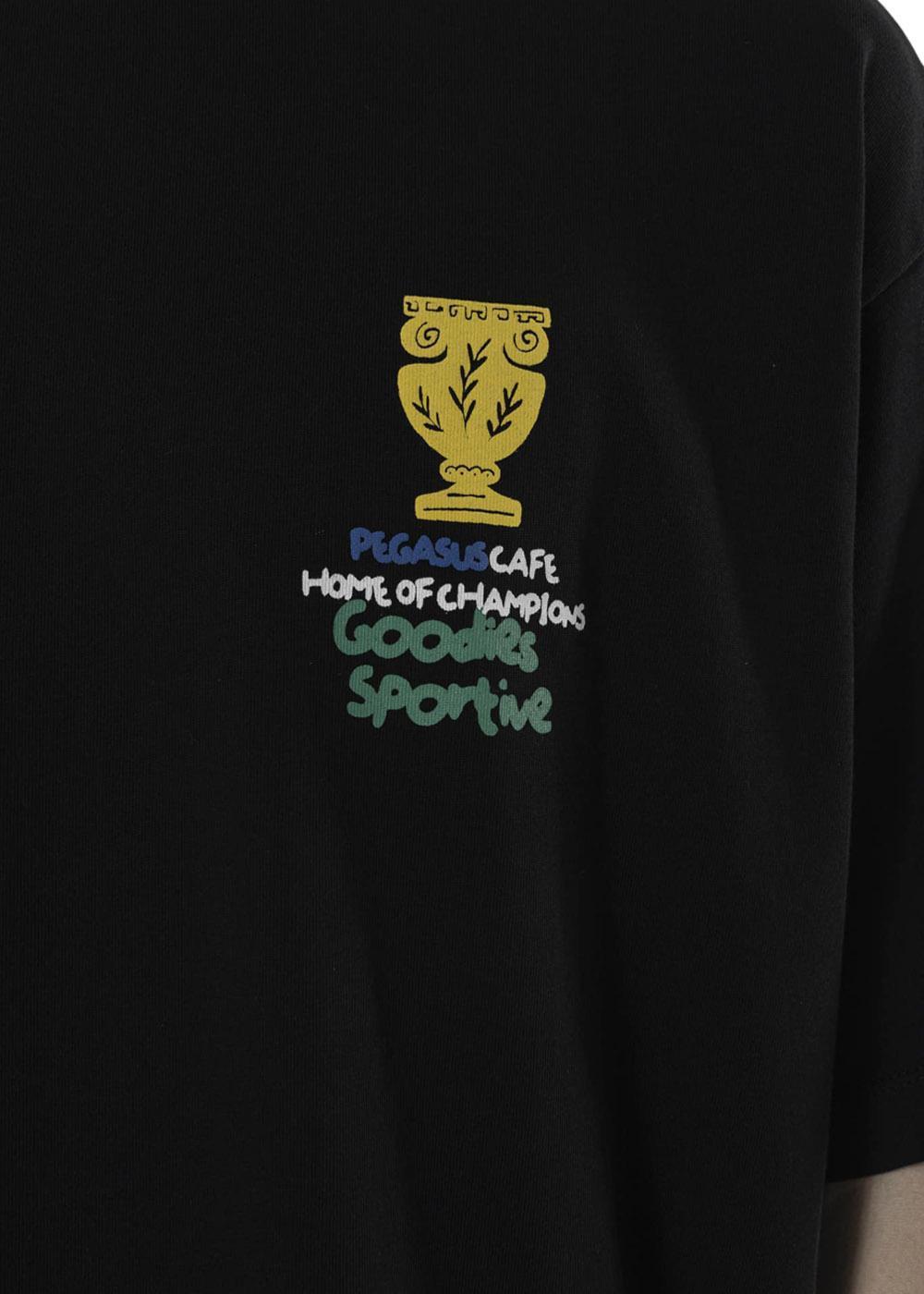 Denne T-skjorten kombinerer en avslappet passform med et unikt grafisk trykk. Den svarte fargen gjør den enkel å style og er et opplagt valg for et moderne og sporty uttrykk i hverdagen.