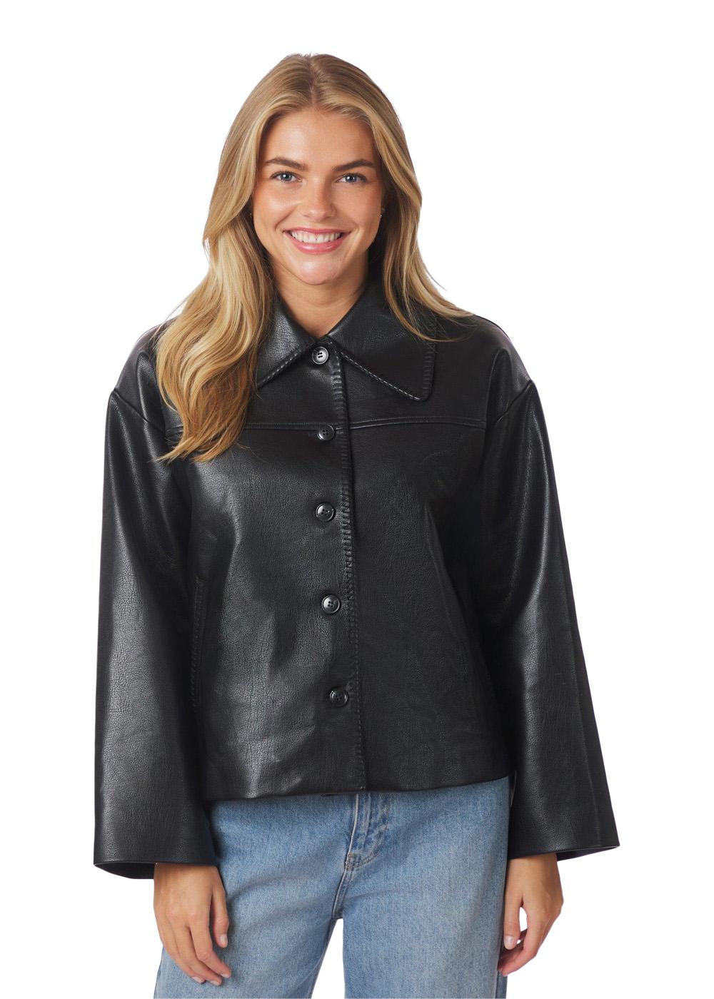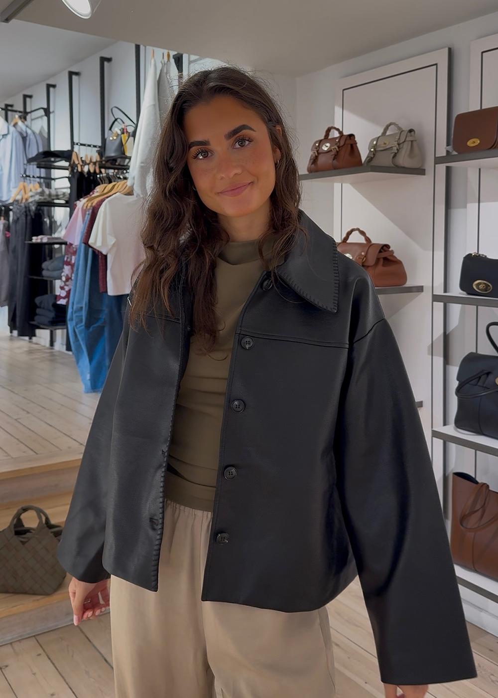 Denne jakken forener et retro-uttrykk med en moderne silhuett. Den ensfargede stilen gjør den allsidig for både hverdag og festlige anledninger, og den er et stilig tillegg til enhver garderobe.