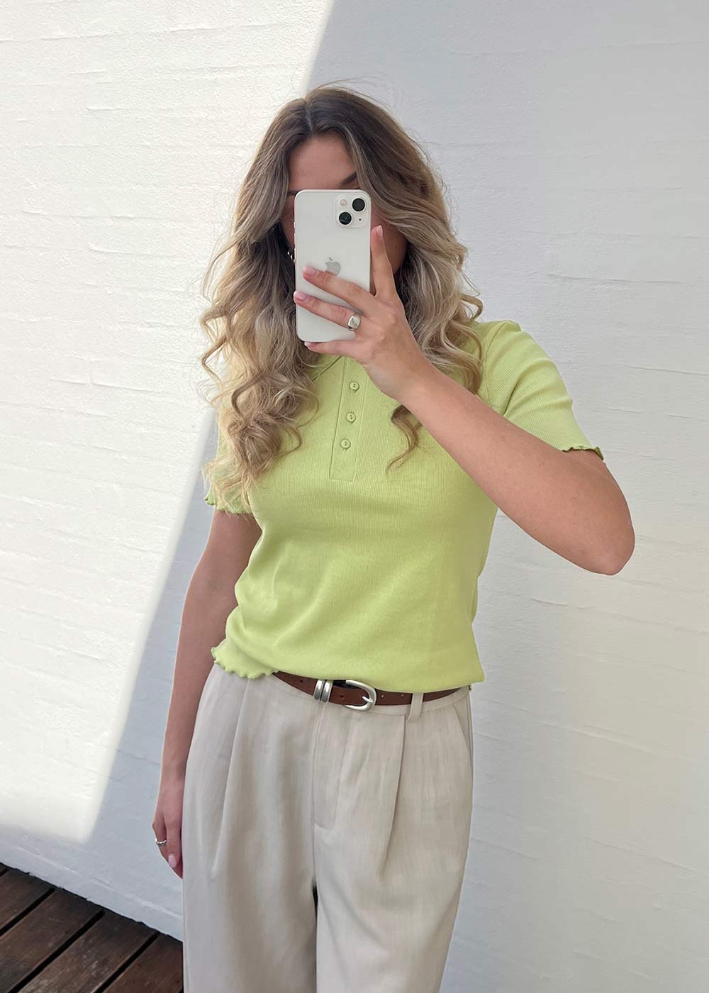 Opplev en stilfull hverdag med denne grønne poloen fra Modström. Med sin figursydde passform og myke, økologiske bomullsblanding, kombinerer den komfort og eleganse. Perfekt for sommerens avslappede look.