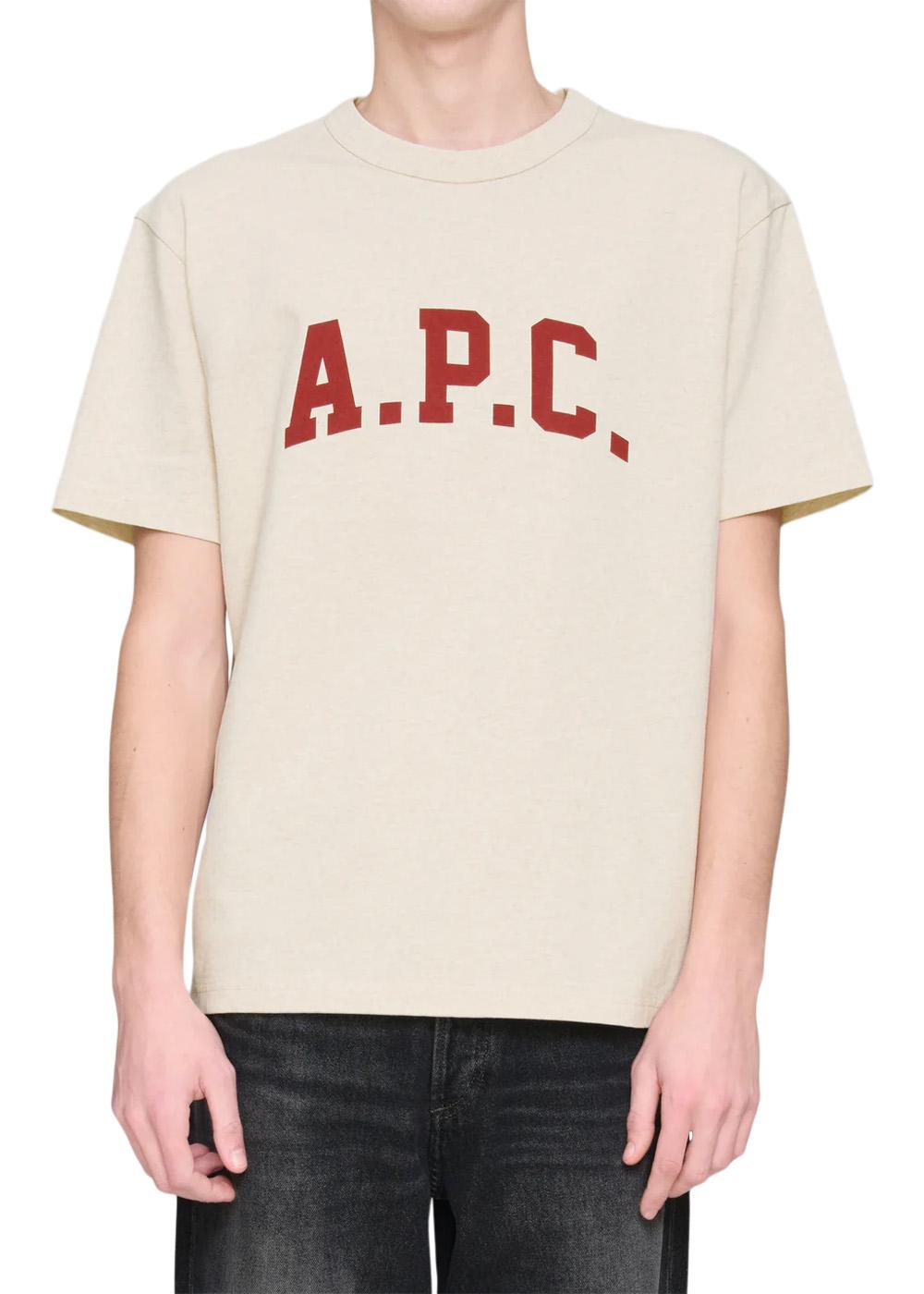 Opplev den klassiske stilen med A.P.C's T-skjorte i en nøytral beige farge. Med sitt logotrykk og vanlige passform er den perfekt for både hverdagsbruk og avslappet hjemmetid.