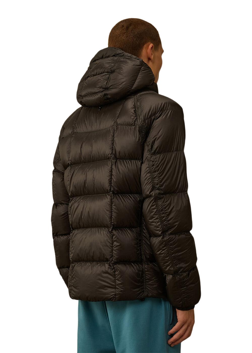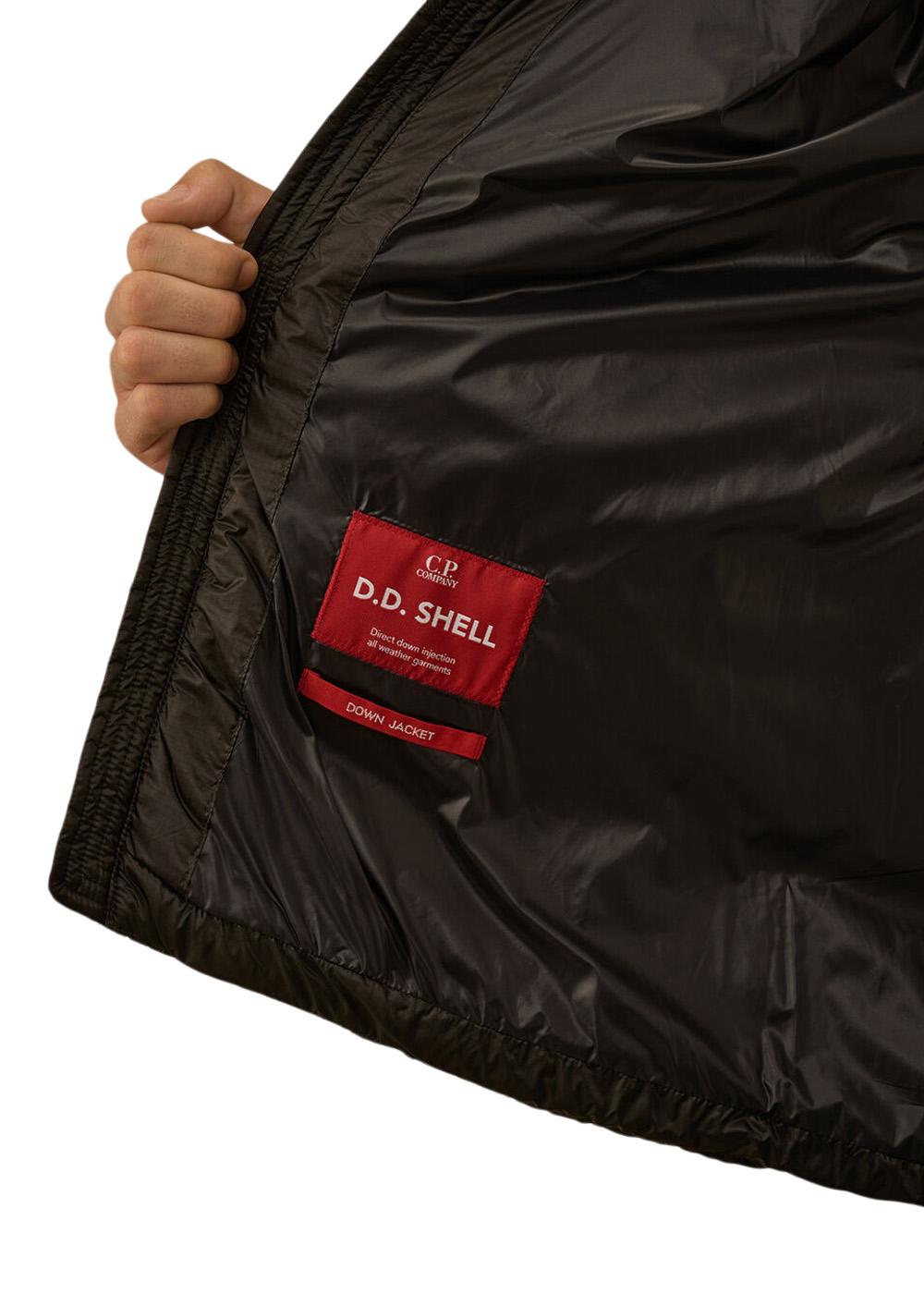 DD-Shell dunjakke fra C.P. Company. Denne korte jakken i en dyp brun farge kombinerer streetwear-stil med funksjonalitet og har en fast hette og et vattert design for optimal varme og komfort.