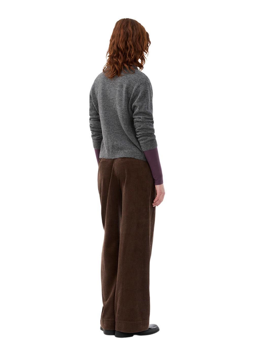 - Ermer: Lange ermer med drop-shoulders for en avslappet silhuett.
