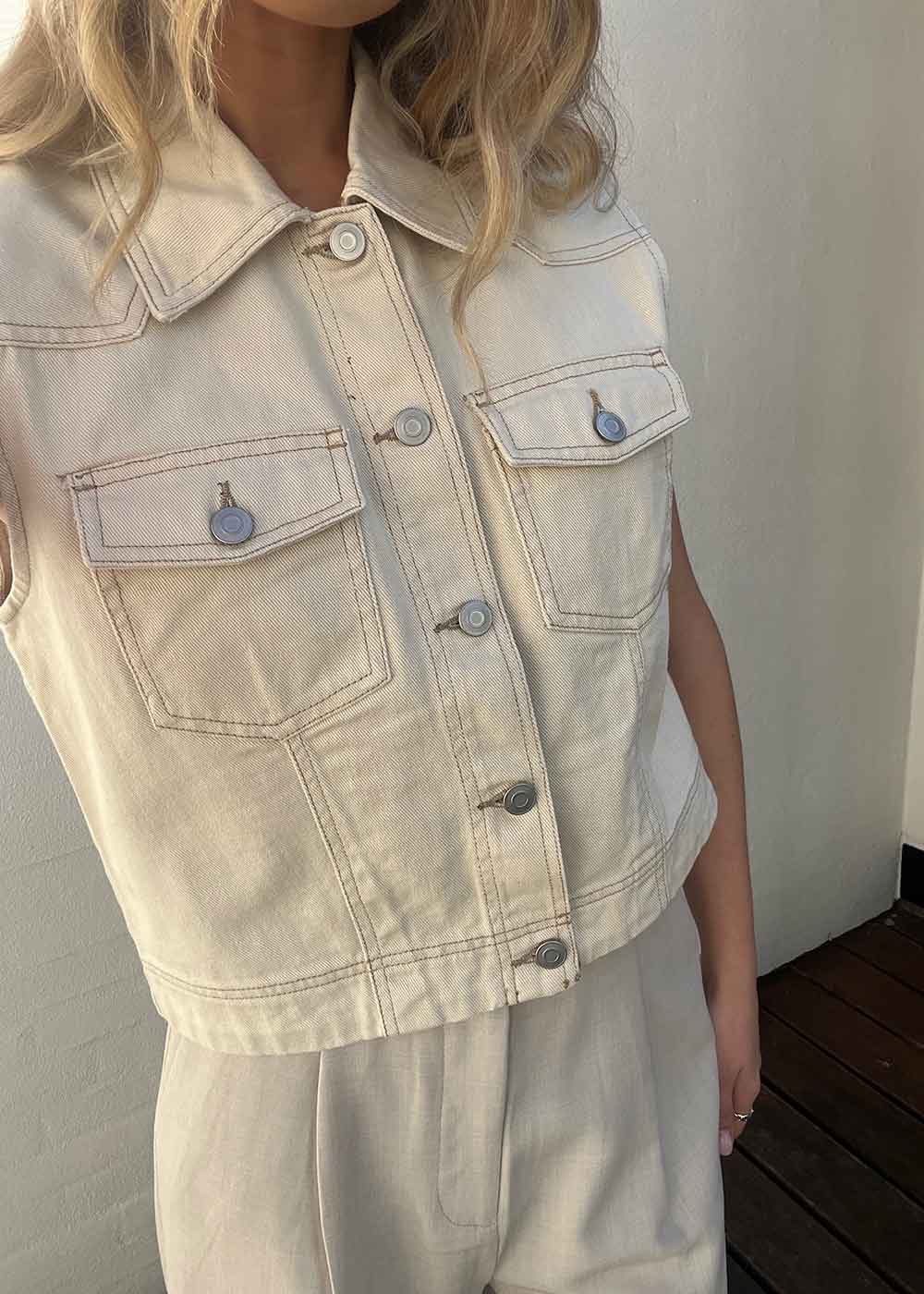 Opplev den klassiske stilen med ROUGE EDITs cropped denimskjorte. Med sin ensfargede kremfarge og gjennomgående knappelukking, er den perfekt for både hverdag og fest. Ideell for å skape et tidløst utseende.