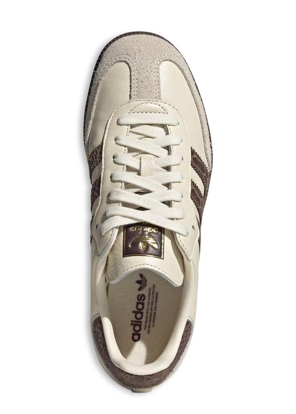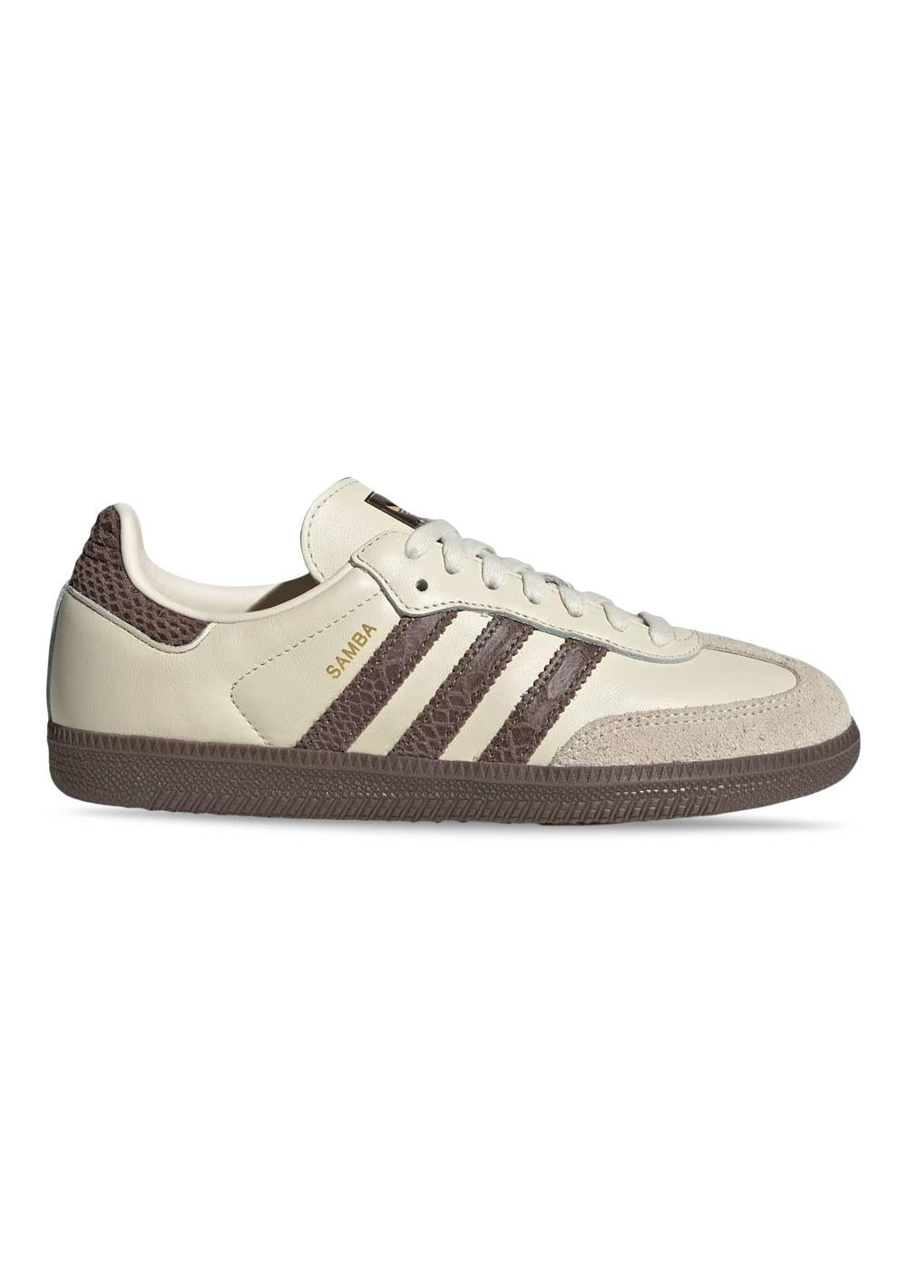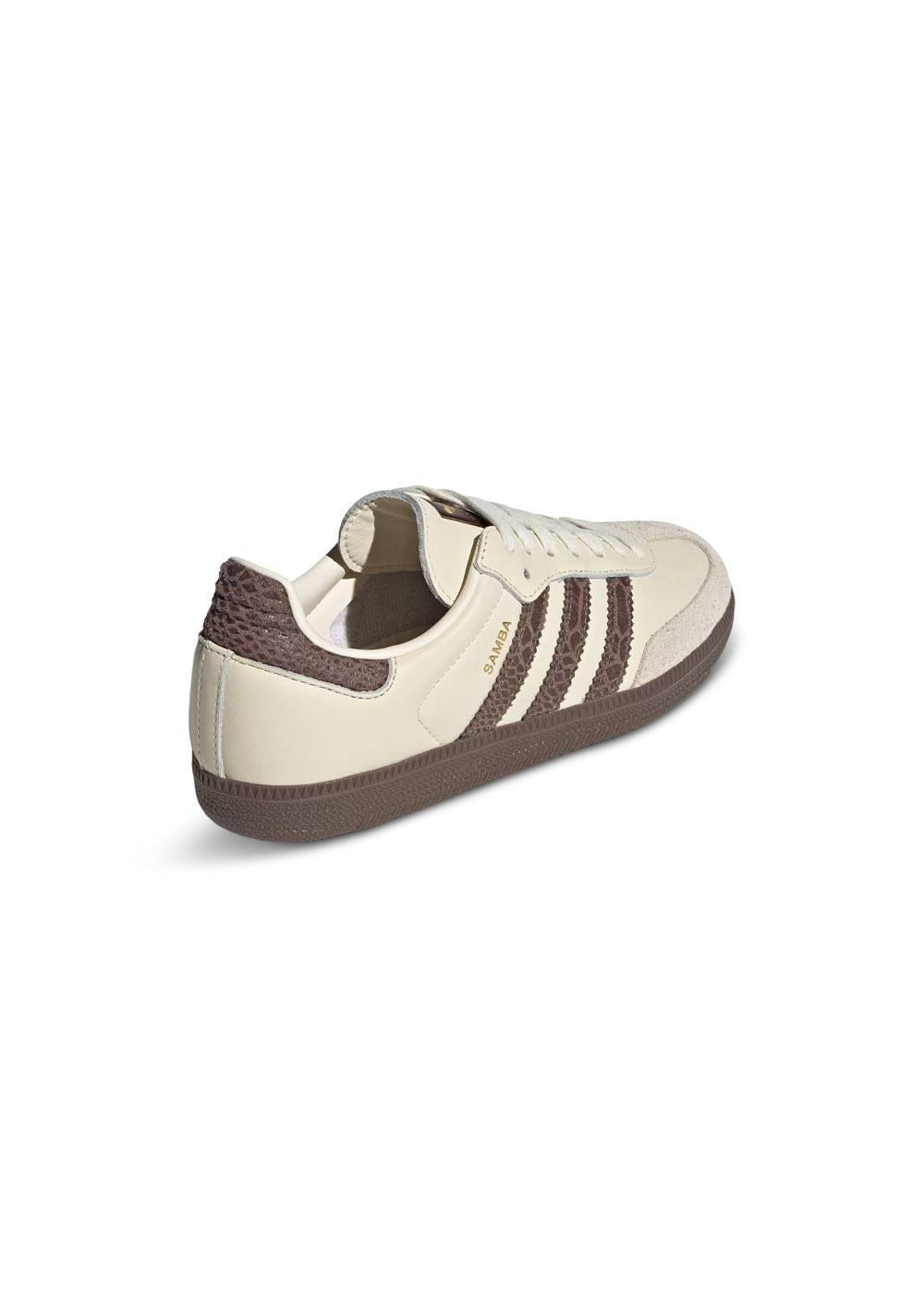 Oppdag den ikoniske Adidas Originals Samba OG W sneakeren i en elegant kremfarget nyanse. Denne versjonen er oppdatert med unike kontrastdetaljer i dyreprint på de klassiske stripene, som gir en moderne og sofistikert vri.