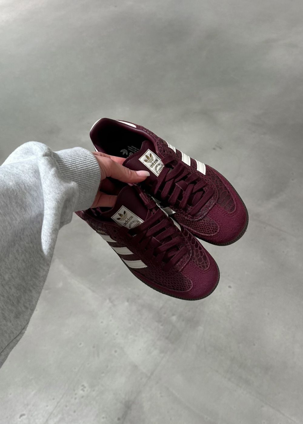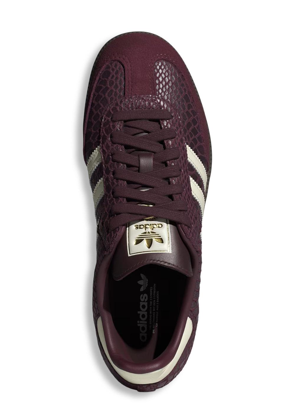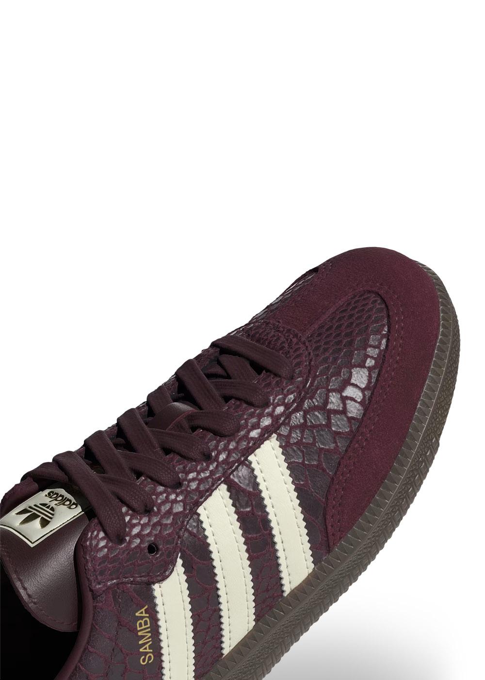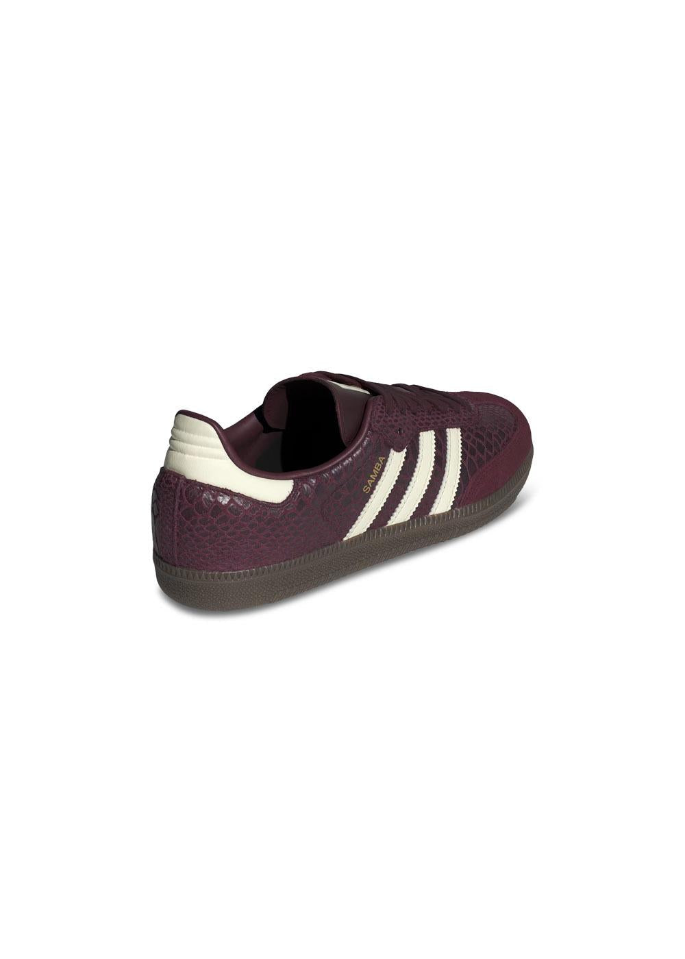 Adidas Originals SAMBA OG W er en klassisk low-top sneaker i en dyp burgunderfarge. Skoen har et unikt dyreprint og er designet med kontrastdetaljer samt den ikoniske logoen for et stilig uttrykk.