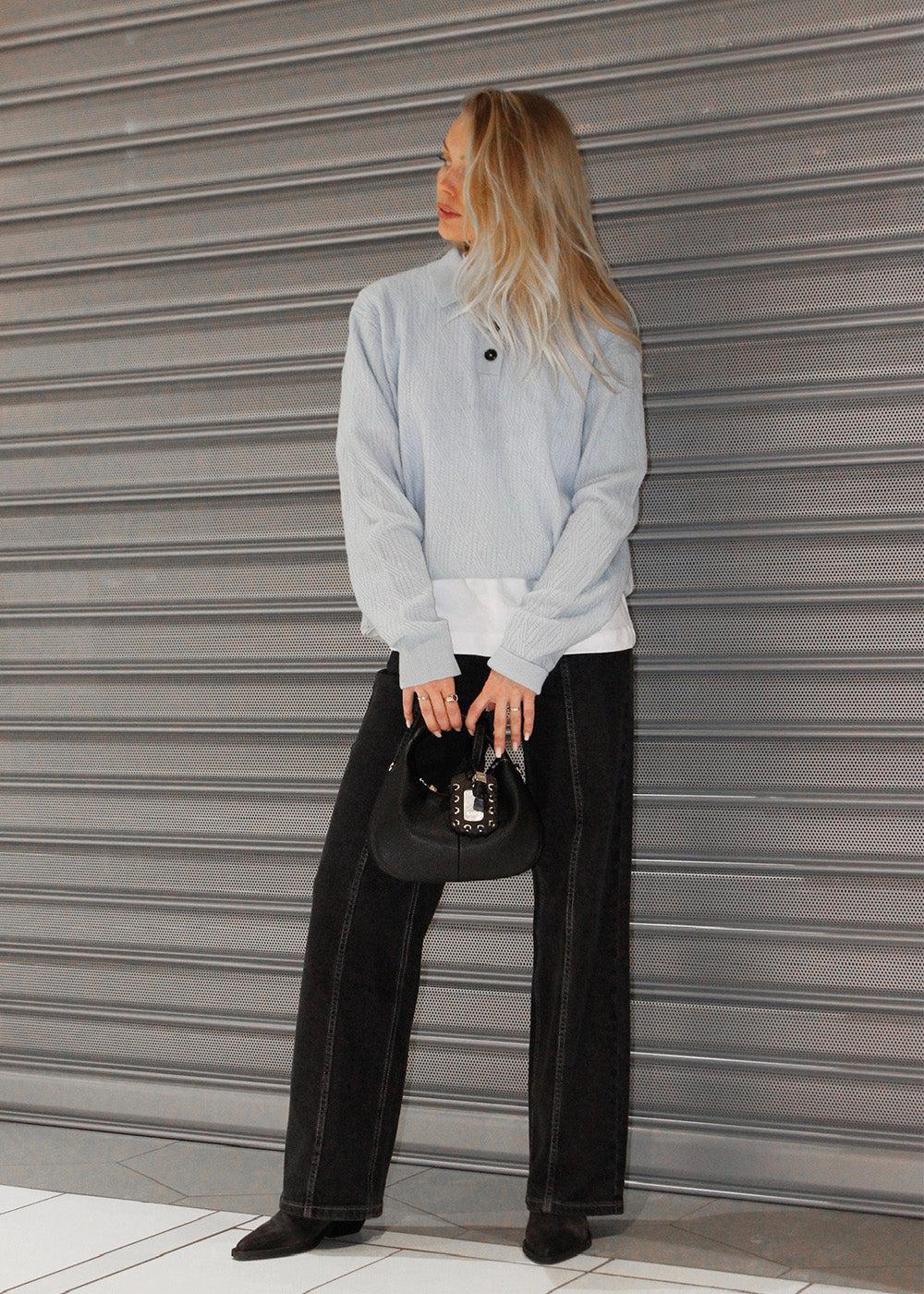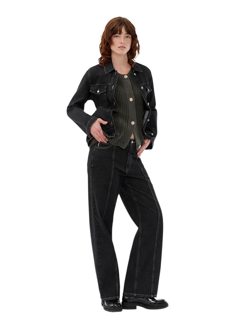 Disse jeansene fra Modström har en moderne passform med vide ben og høy midje. De er laget i en mørk vask med en ensfarget finish, som gir en stilren og 90-tallsinspirert look.