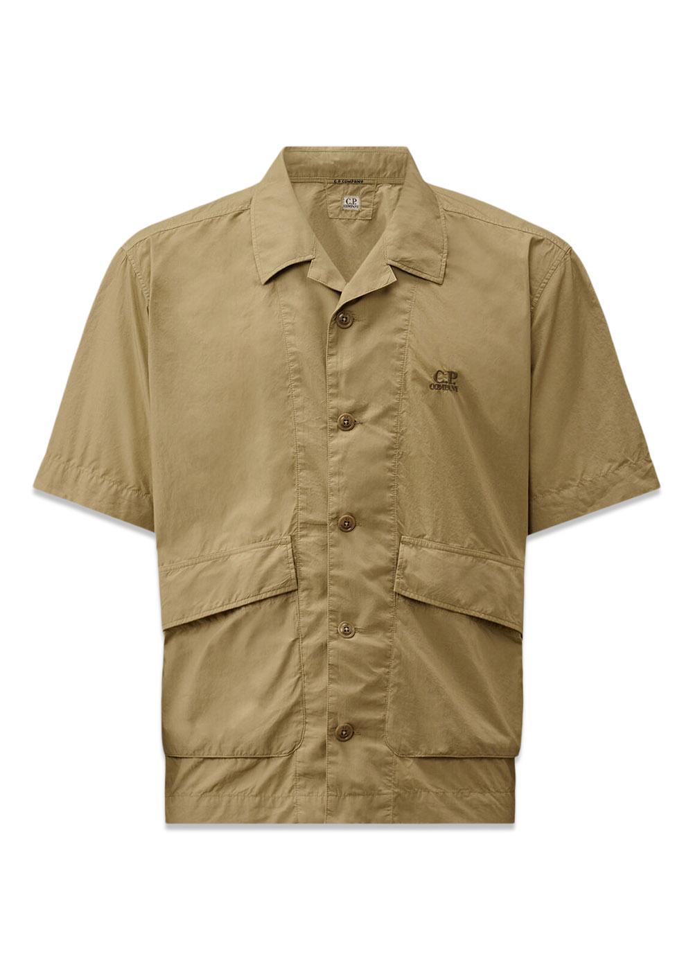 Denne kortermede skjorten i poplin fra C.P. Company er utført i fargen Moss Gray. Skjorten har et avslappet uttrykk med to markante brystlommer, kontrastknapper og en diskret brodert logo på brystet.