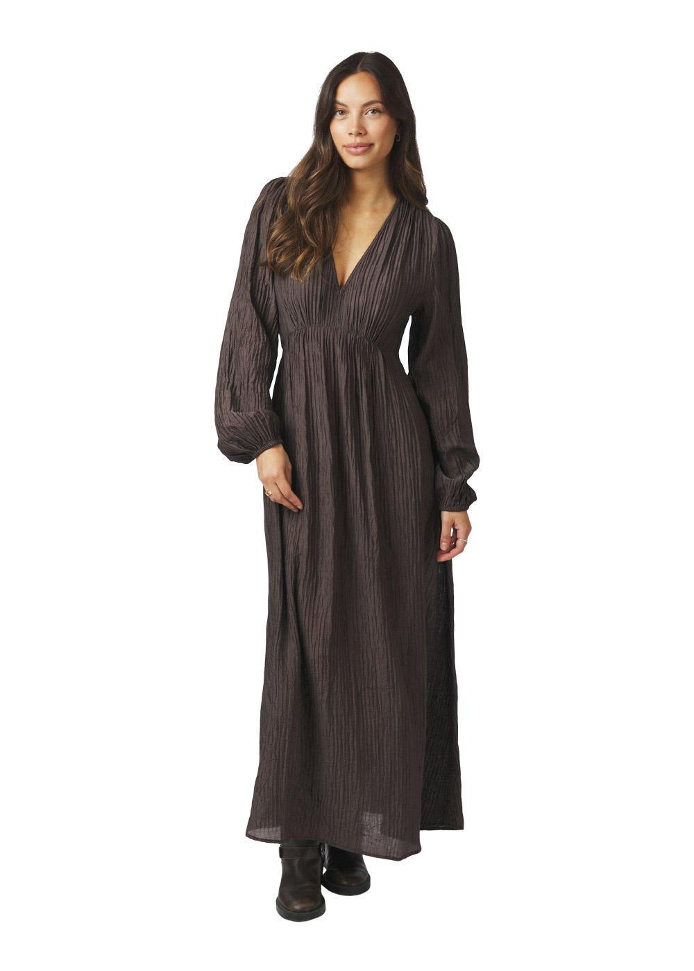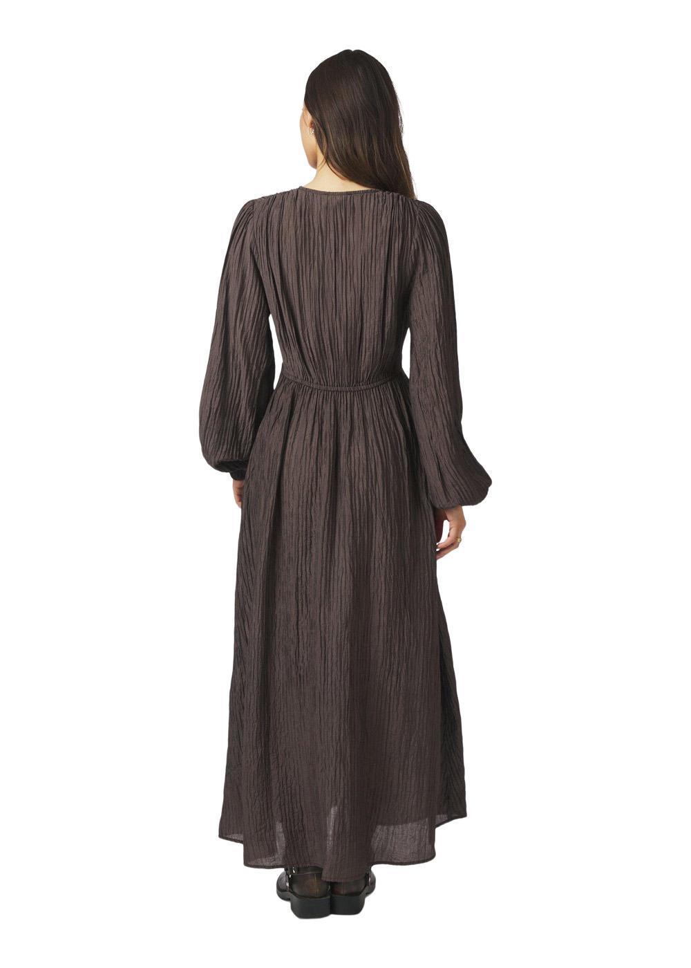 Denne klassiske kjolen i en dyp brun farge kombinerer et elegant design med en behagelig passform. Den er et opplagt valg til formelle og festlige anledninger, hvor du ønsker et stilfullt uttrykk.