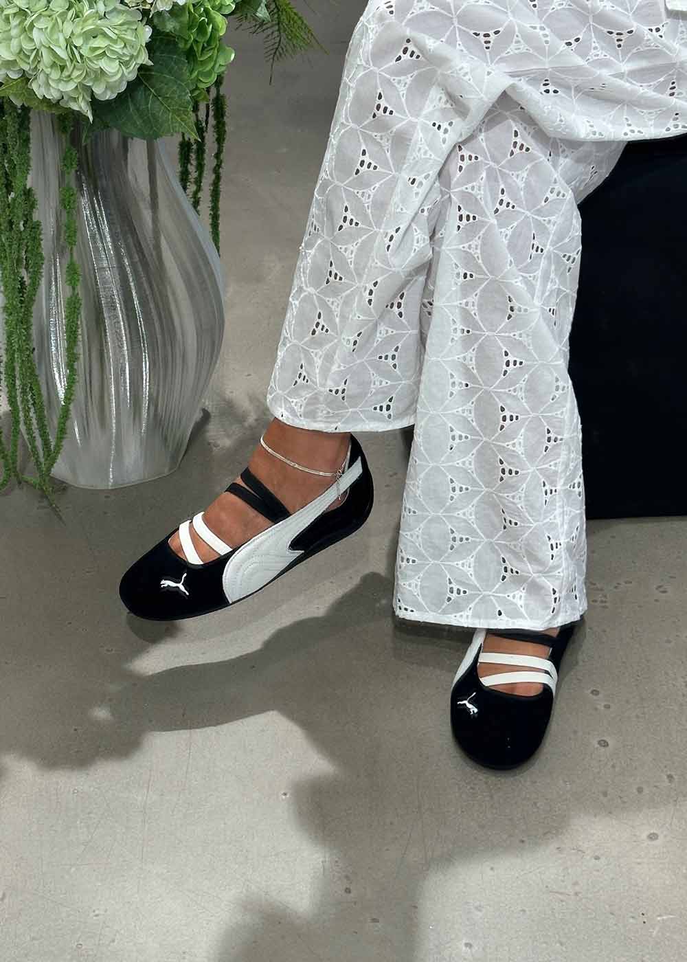 - Komfortabel passform med en flat hæl og en klassisk rund skotupp.
