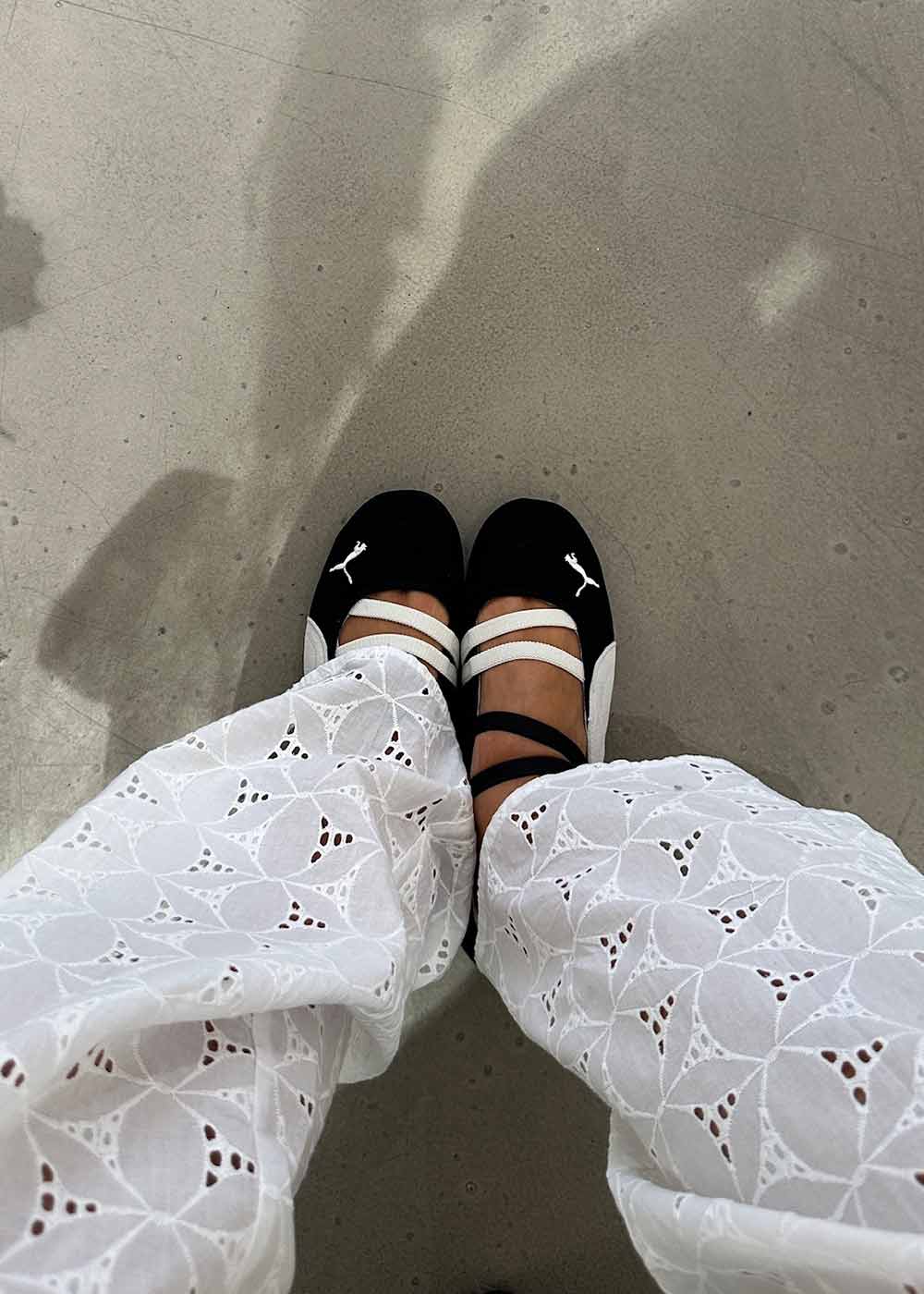 Disse skoene kombinerer sporty eleganse med praktisk komfort. Det enkle designet med kontrastdetaljer gjør dem til et allsidig valg for et moderne og avslappet utseende til hverdagsbruk.