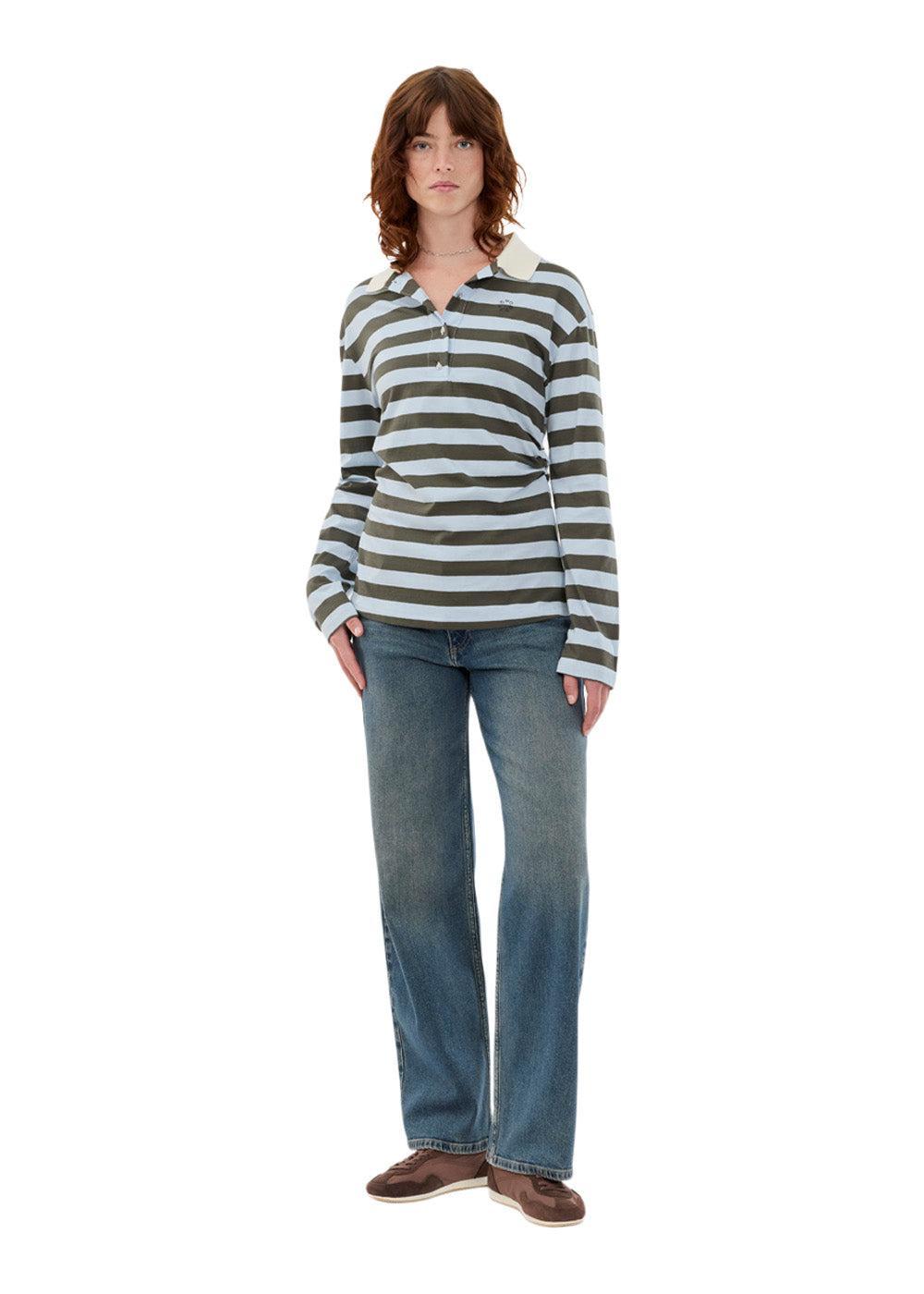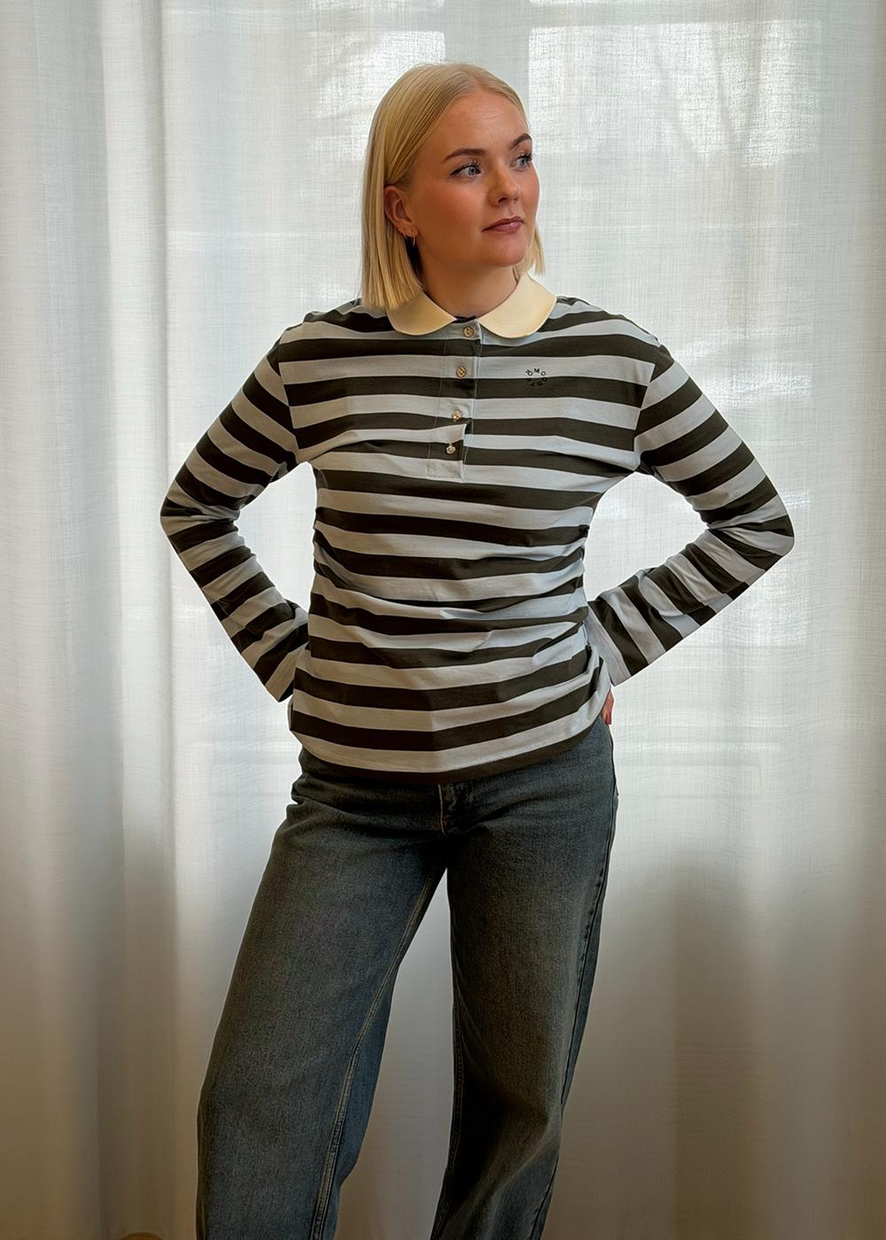Stetsonmd LS stripe polo fra Modström er en langermet T-skjorte i et stripete design med grønne og blå nyanser. Den har en klassisk polokrage og et sporty uttrykk med fine snittlinjer i siden.