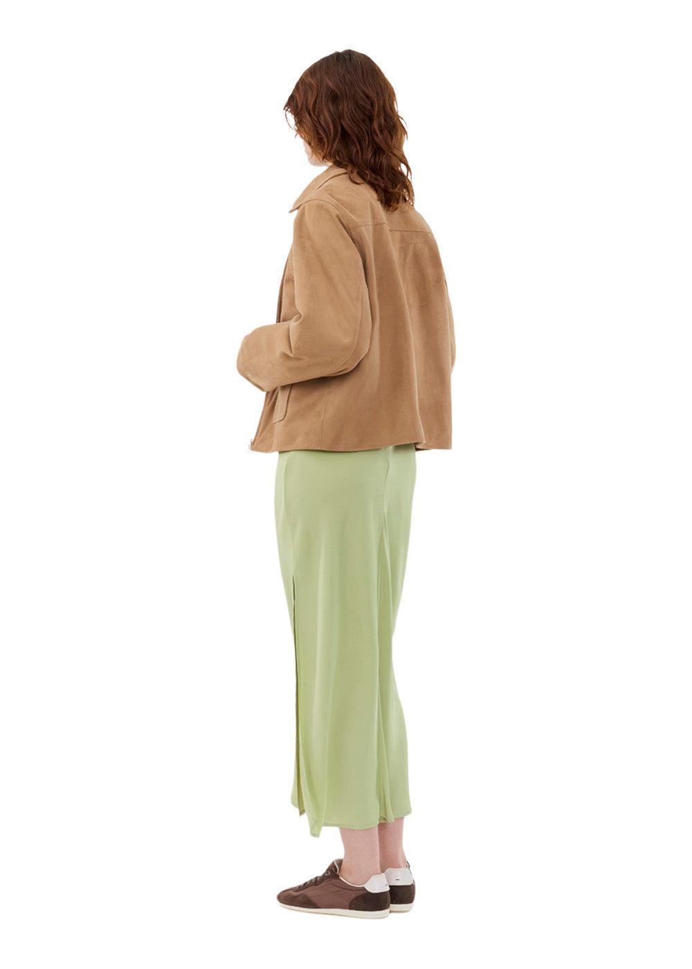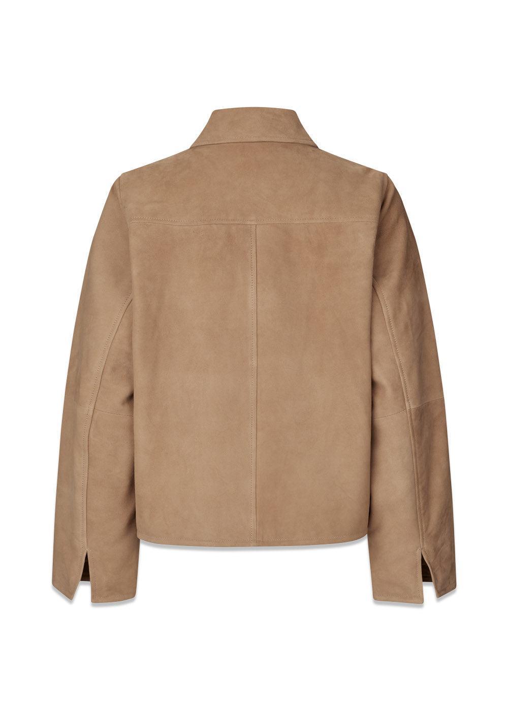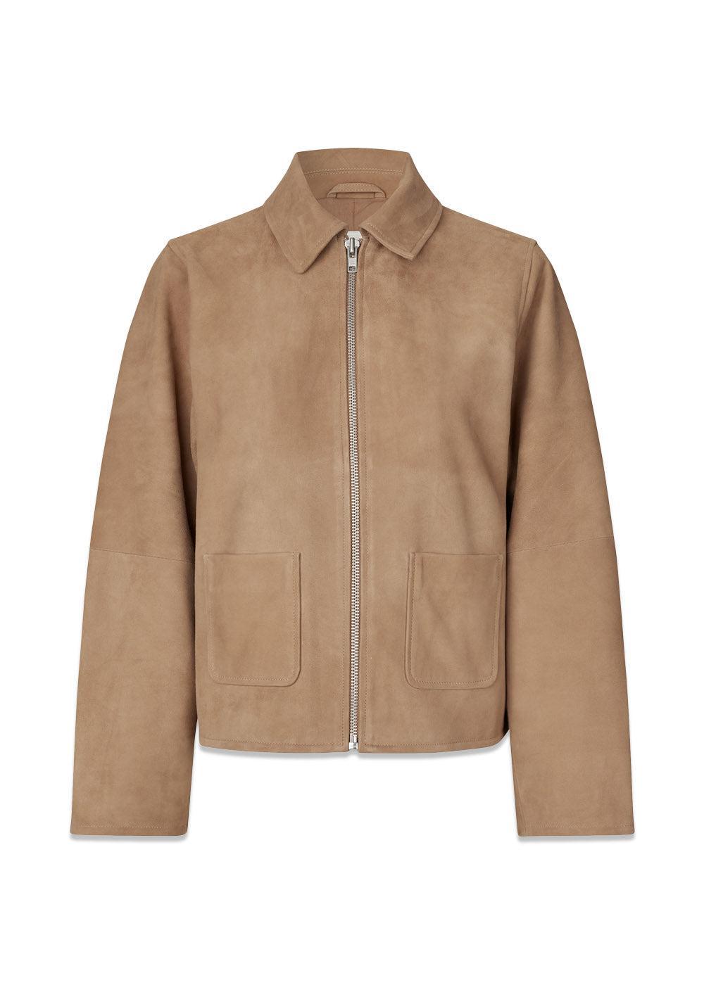 Klassisk semsket skinnjakke fra Modström i en vakker, ensfarget camel. Jakken har et stilrent design med en moderne, boxy passform, glidelåslukking og påsydde forlommer, som skaper et tidløst og elegant uttrykk.