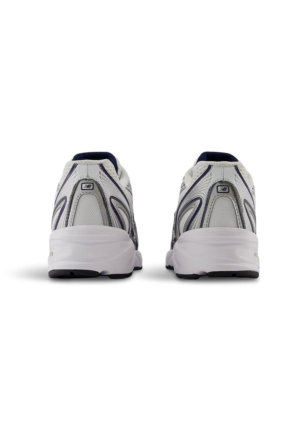 Denne New Balance-sneakeren kombinerer et klassisk design med moderne komfort. Utført i hvitt og krem med stilige marineblå kontrastdetaljer og en brodert logo som gir et rent og tidløst uttrykk.
