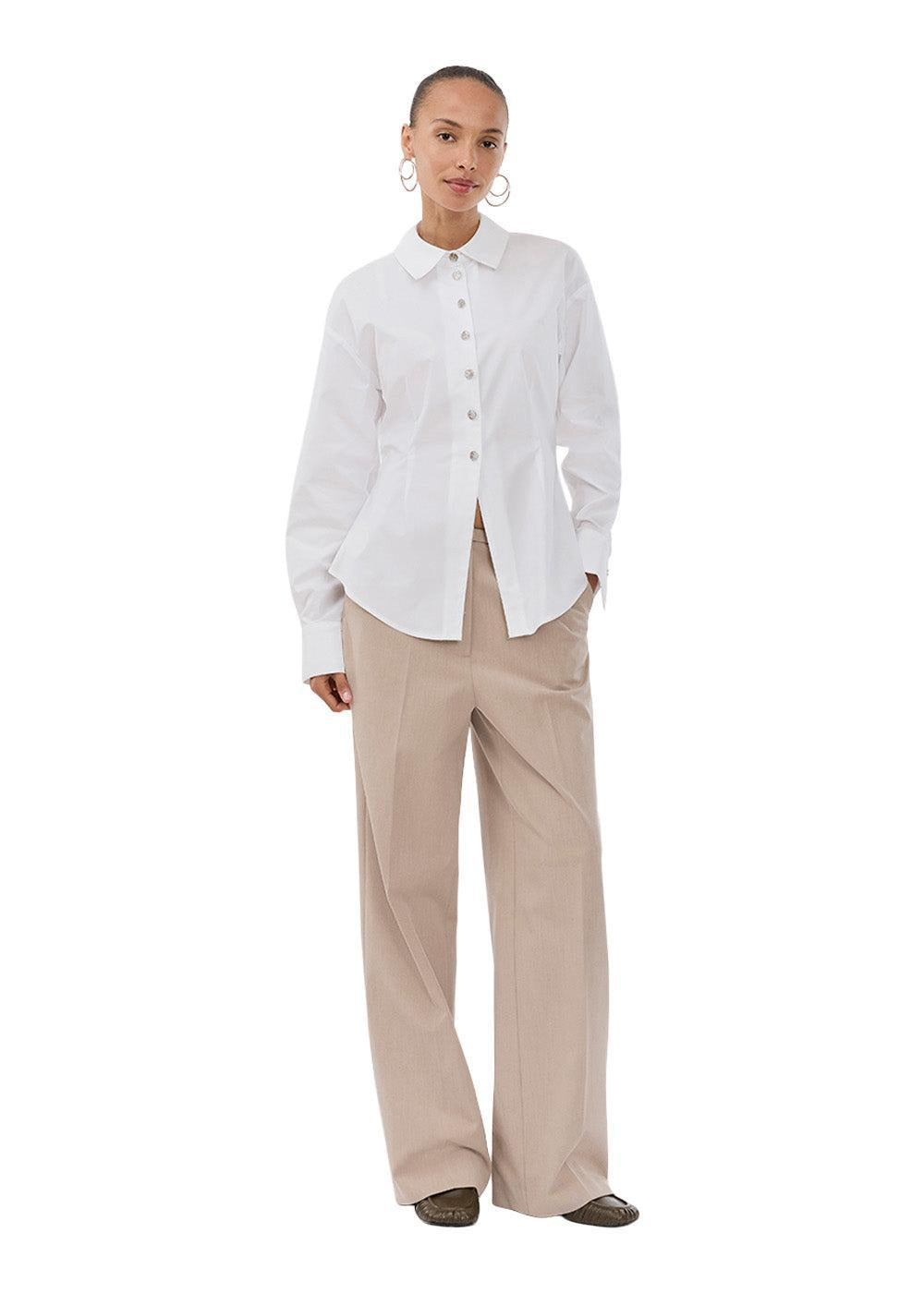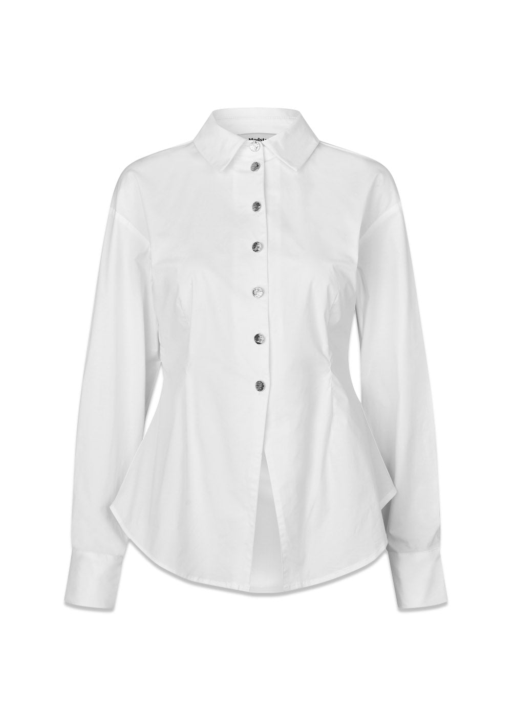 Ullismd er en klassisk skjorte fra Modström i en hvit nyanse. Den har en slank passform som fremheves av snittlinjer, og er designet med dekorative kontrastknapper og en diskret splitt foran.