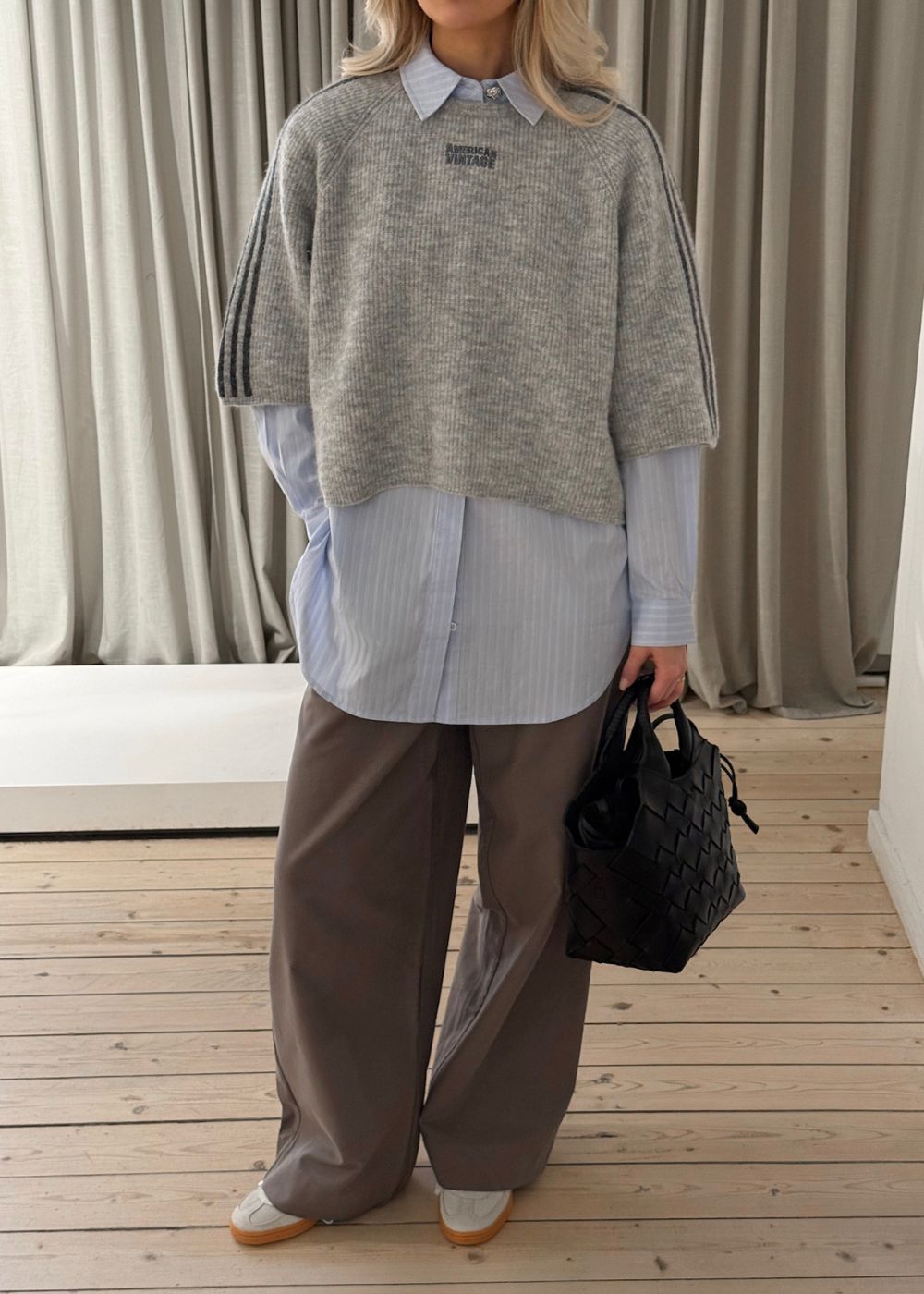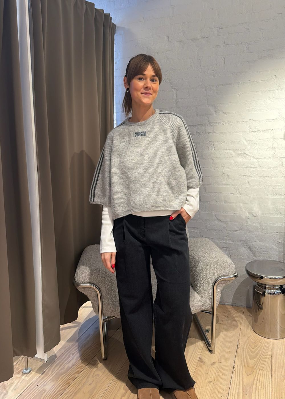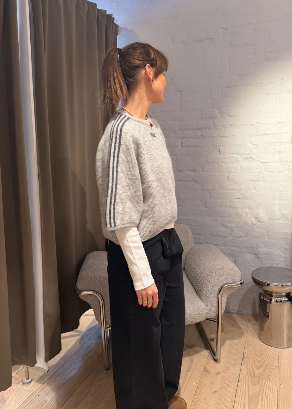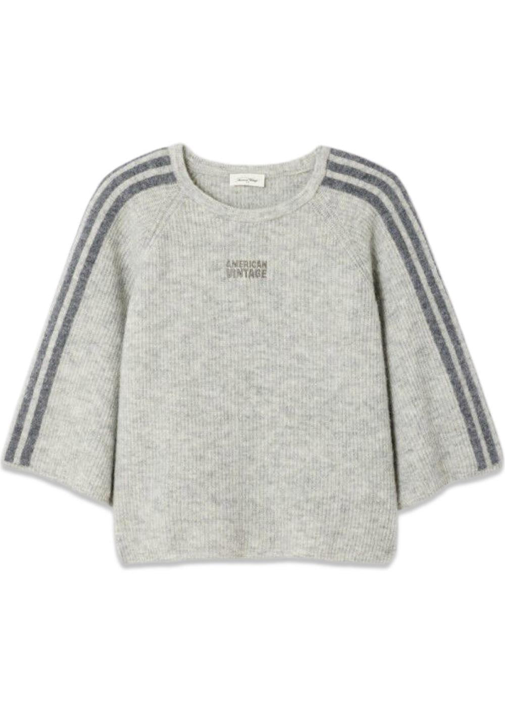Opplev denne sporty, finstrikkede genseren fra American Vintage. Den gråmelerte fargen med svarte striper på ermene gir et klassisk uttrykk, mens den broderte logoen og den croppede lengden gir et moderne preg.