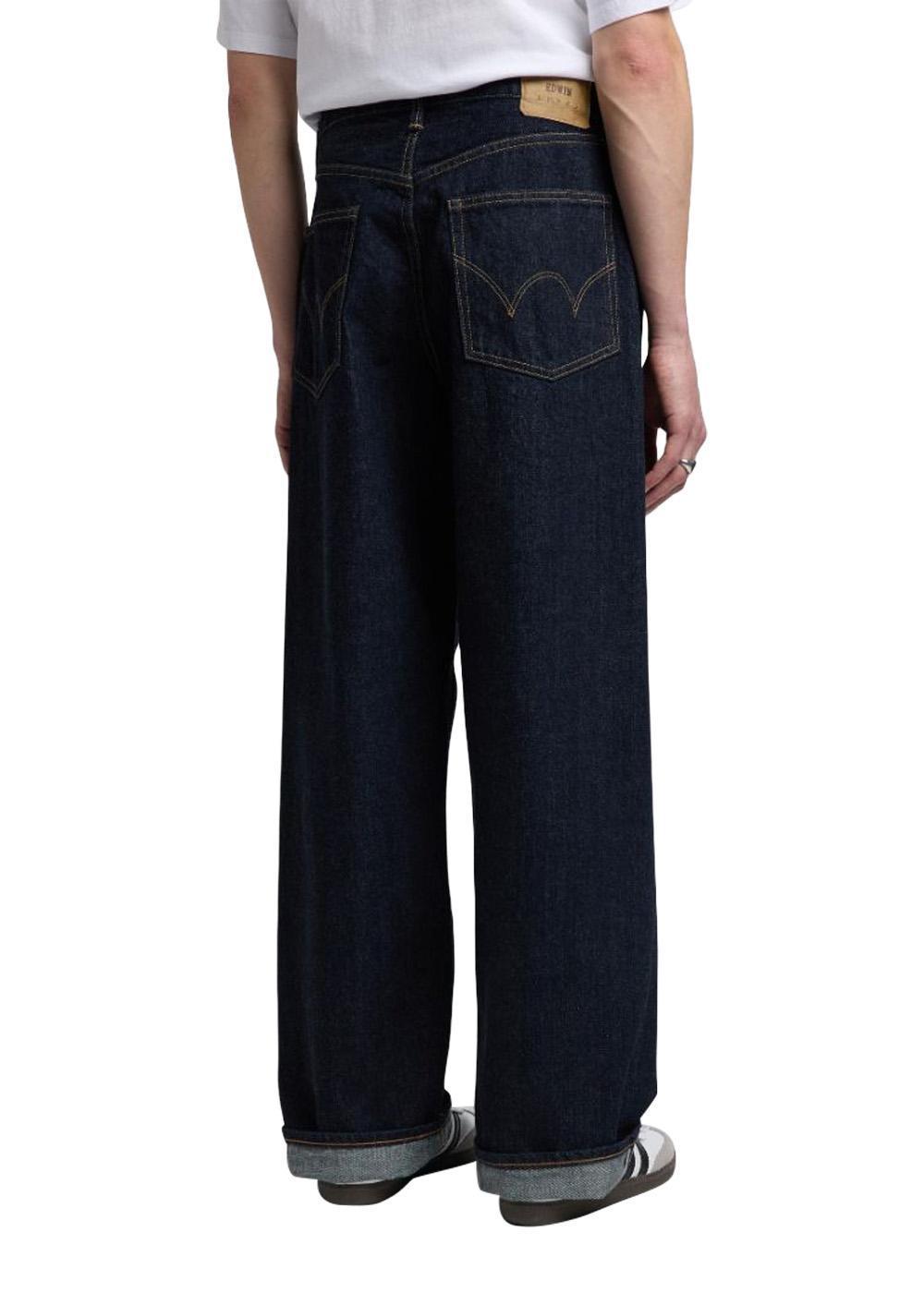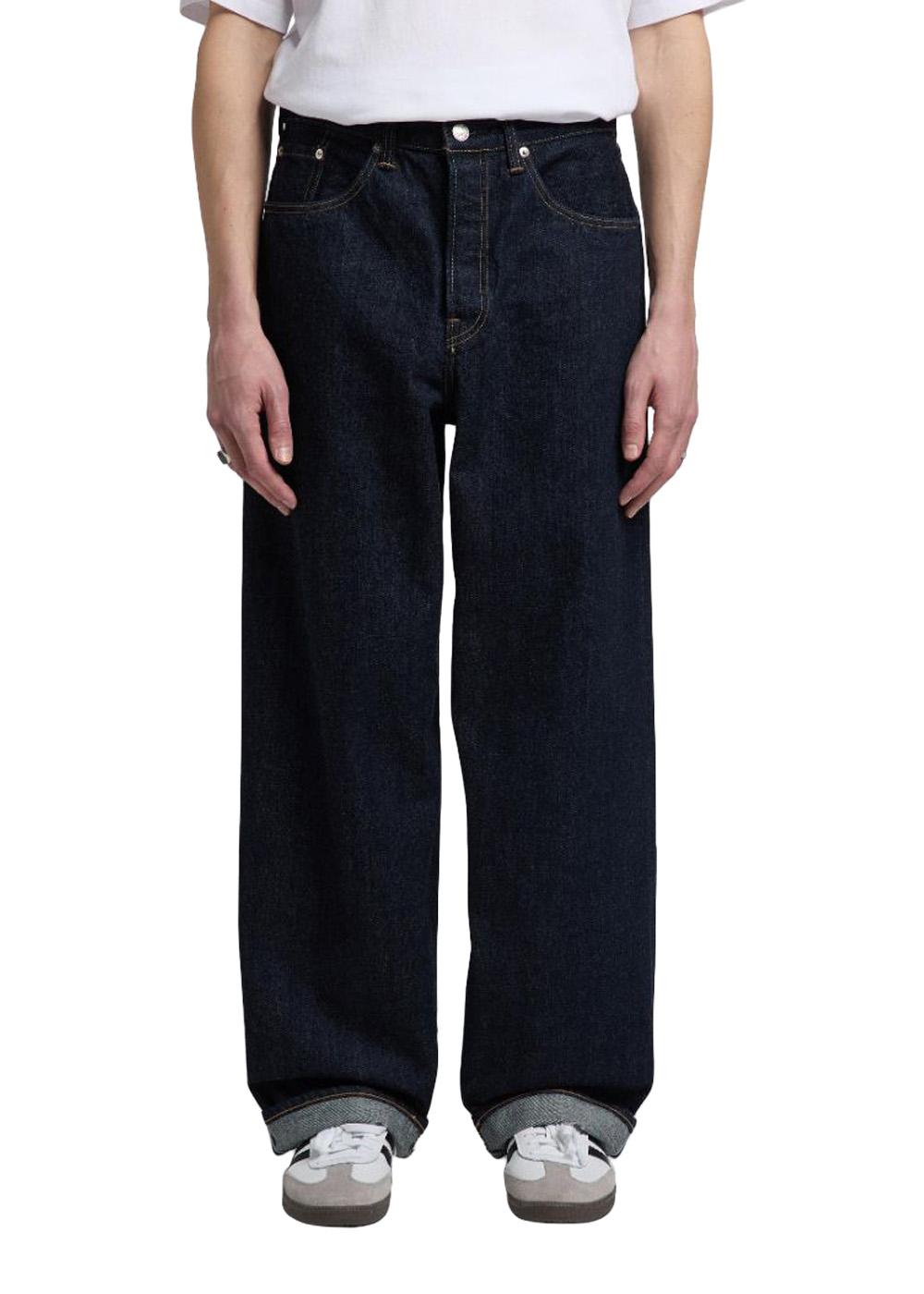 Disse jeansene i en dyp blåfarge kombinerer en avslappet 90-tallsstil med moderne komfort. Den høye midjen og de vide bena skaper en flatterende silhuett som er ideell for hverdagsbruk.