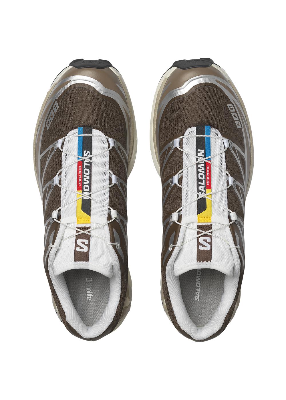 MERK: Dette er en forhåndsbestilling. Salomon XT-6 er en teknisk sneaker i en dyp jordbrun farge med kontrastdetaljer i sølv. Det funksjonelle designet og det moderne uttrykket gjør den til et allsidig valg for hverdagsbruk.
